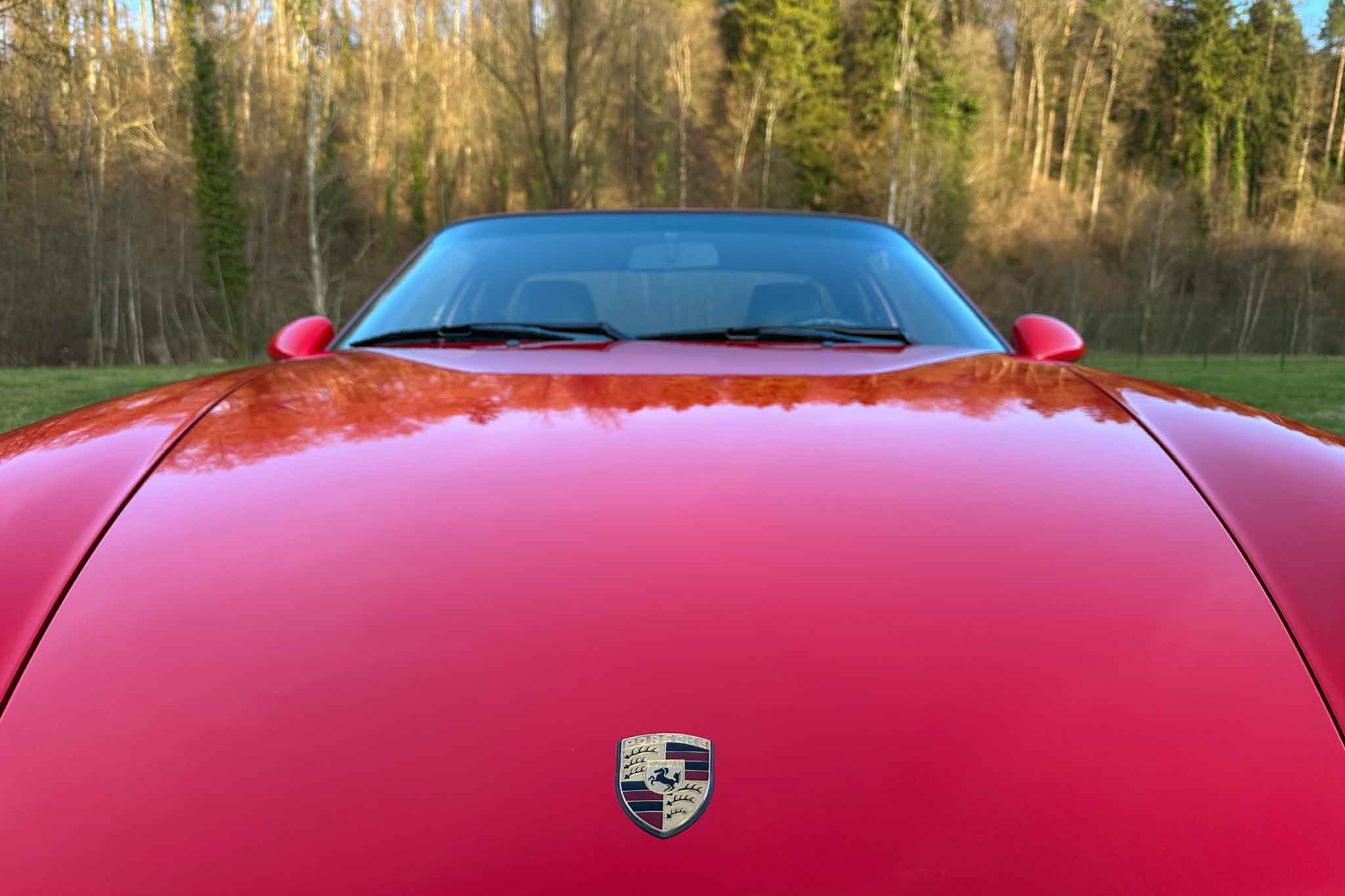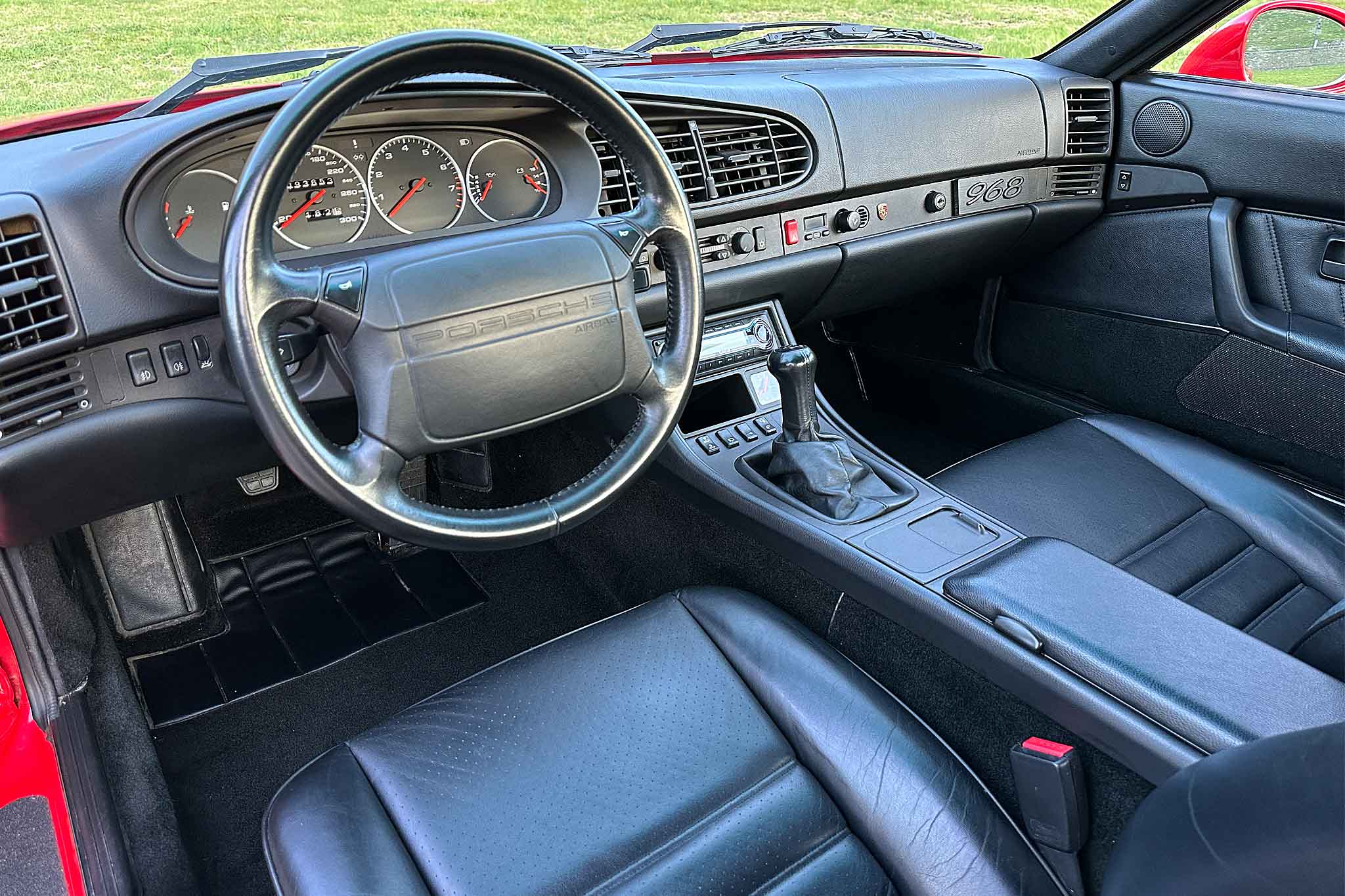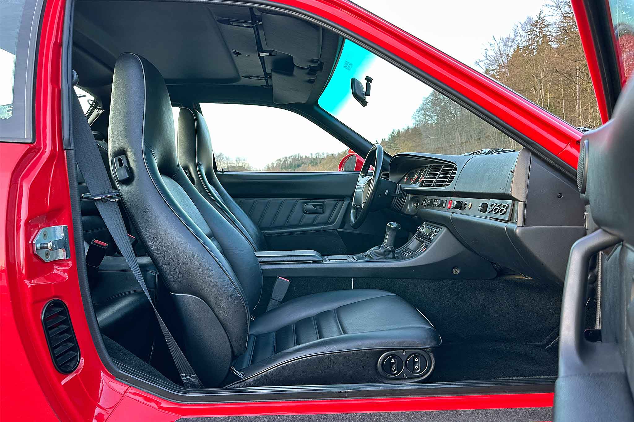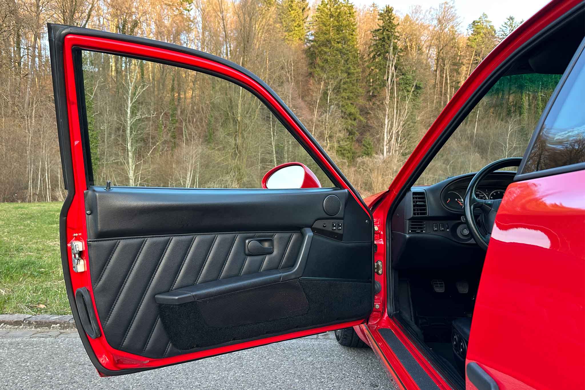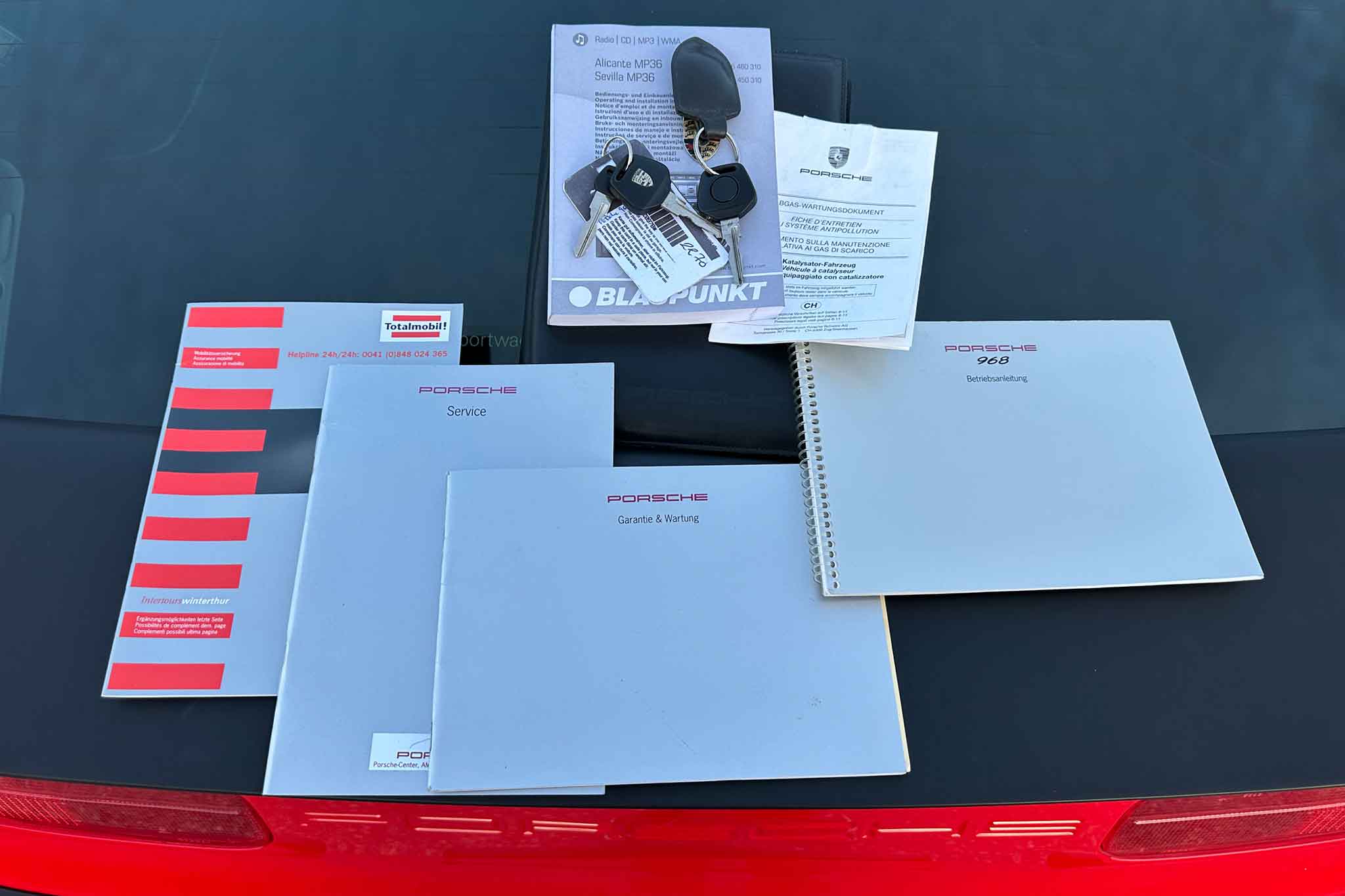 The Porsche 968 offered here was delivered new in March 1994 by AMAG Zurich in Indian Red with a black leather interior to the then 68-year-old first owner, who was fulfilling a lifelong dream. The car remained there for the next 21 years and was cherished and meticulously maintained before passing to its second owner in 2015. This beautiful Porsche 968, with only two previous owners, has just passed its MOT veteran inspection and is in incomparable collector’s condition—almost like new. The on-board folder containing all original documents, such as the owner’s and operator’s manuals, the neatly maintained warranty and service booklet, the emissions maintenance document, and various receipts, is included, as are all keys, the spare tire with compressor, and the on-board tool kit.