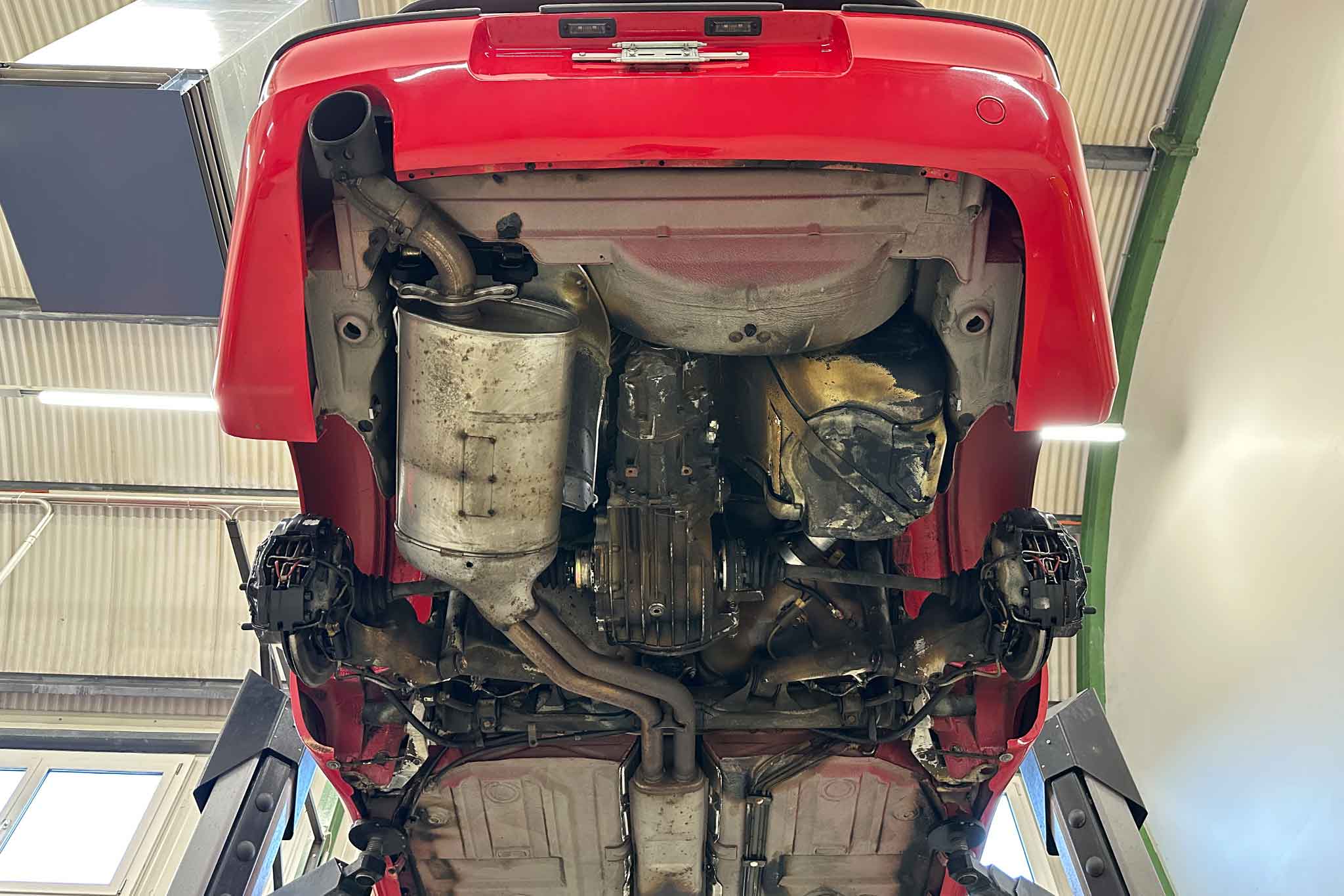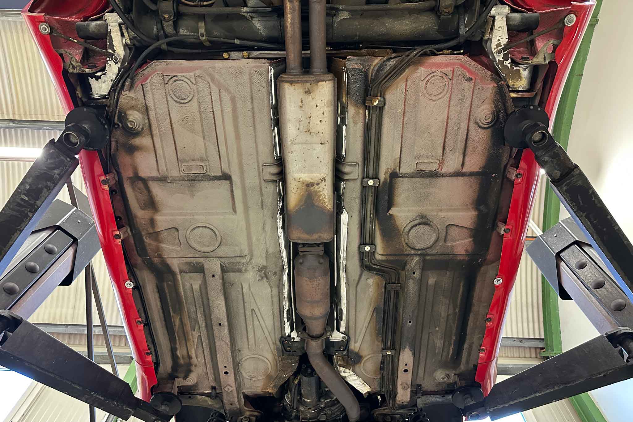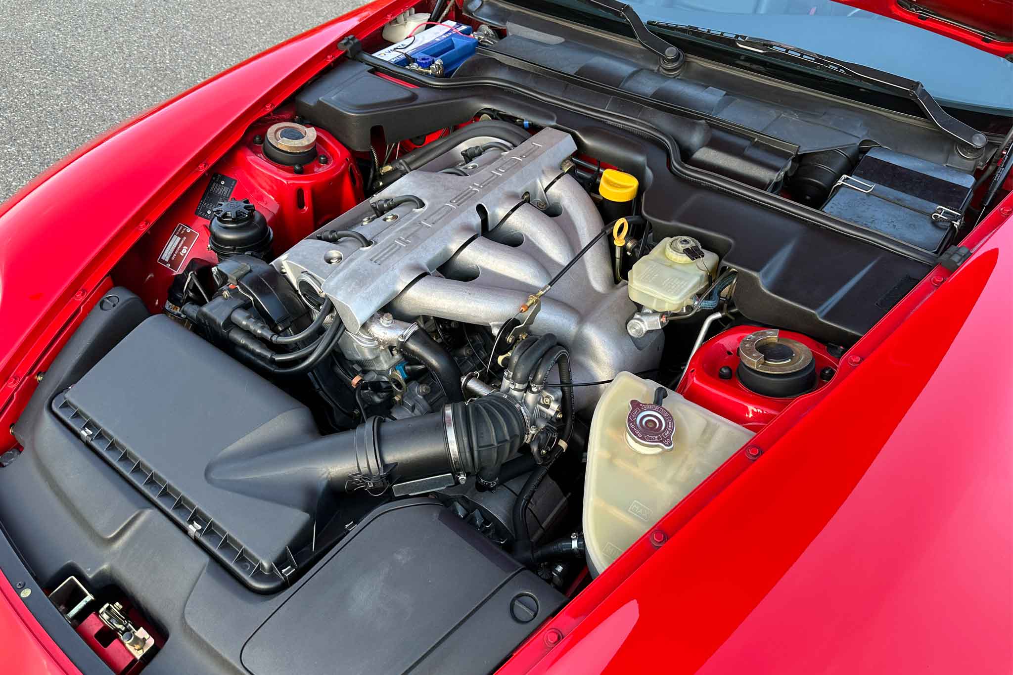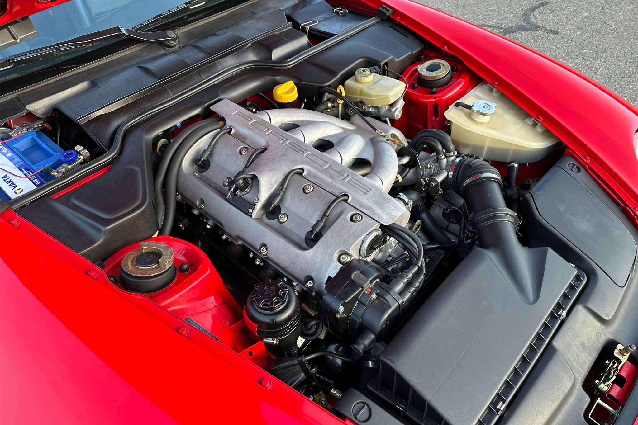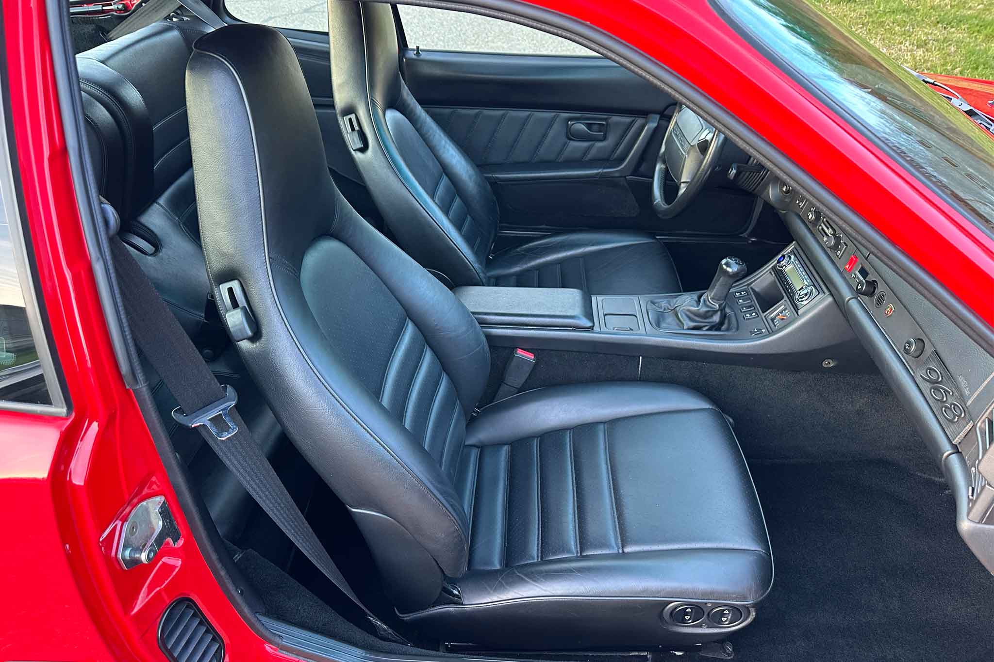 The Porsche 968 offered here was delivered new in March 1994 by AMAG Zurich in Indian Red with a black leather interior to the then 68-year-old first owner, who was fulfilling a lifelong dream. The car remained there for the next 21 years and was cherished and meticulously maintained before passing to its second owner in 2015. This beautiful Porsche 968, with only two previous owners, has just passed its MOT veteran inspection and is in incomparable collector’s condition—almost like new. The on-board folder containing all original documents, such as the owner’s and operator’s manuals, the neatly maintained warranty and service booklet, the emissions maintenance document, and various receipts, is included, as are all keys, the spare tire with compressor, and the on-board tool kit.