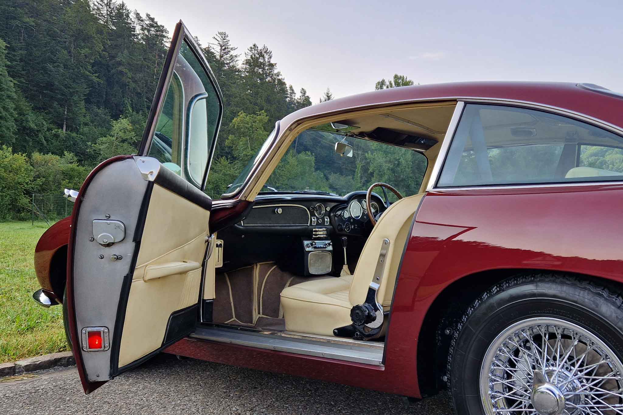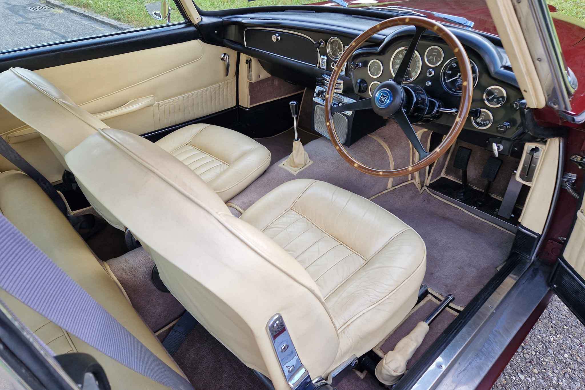 Der hier angebotene Aston Martin DB5 wurde im Oktober 1964, in der Farbe Dubonnet Rosso und mit Lederinterieur Connolly Fawn, im Vereinigten Königreich an Plough Motors als Demo-Wagen ausgeliefert. Mitte der achtziger Jahre wurde er in einem schlechten Zustand an einer Auktion verkauft und bei den Aston Martin Spezialisten, Four Ashes Garage in Stratford-upon-Avon, totalrestauriert. Später wurde das Auto von einer Schweizer Familie nach Gstaad importiert.