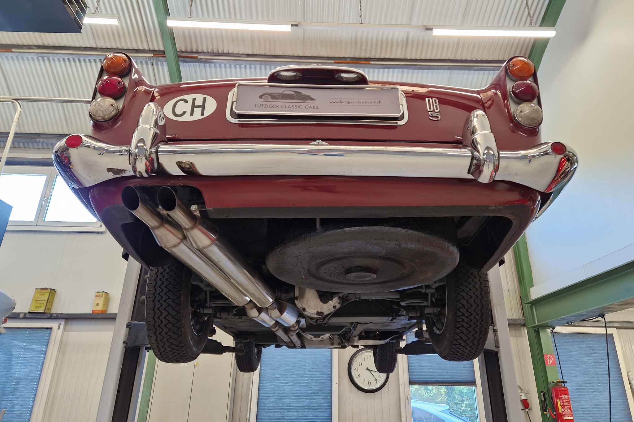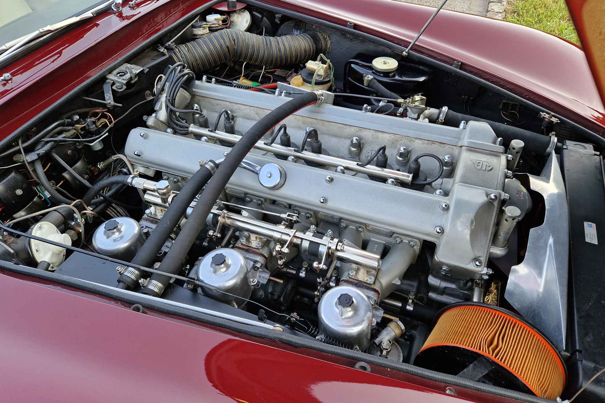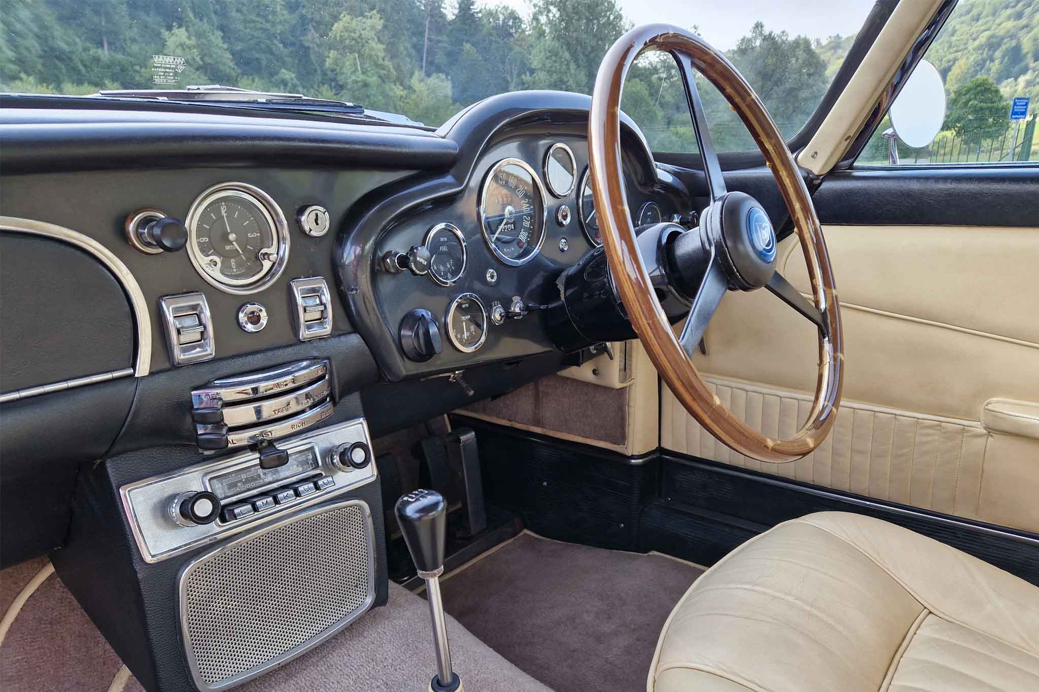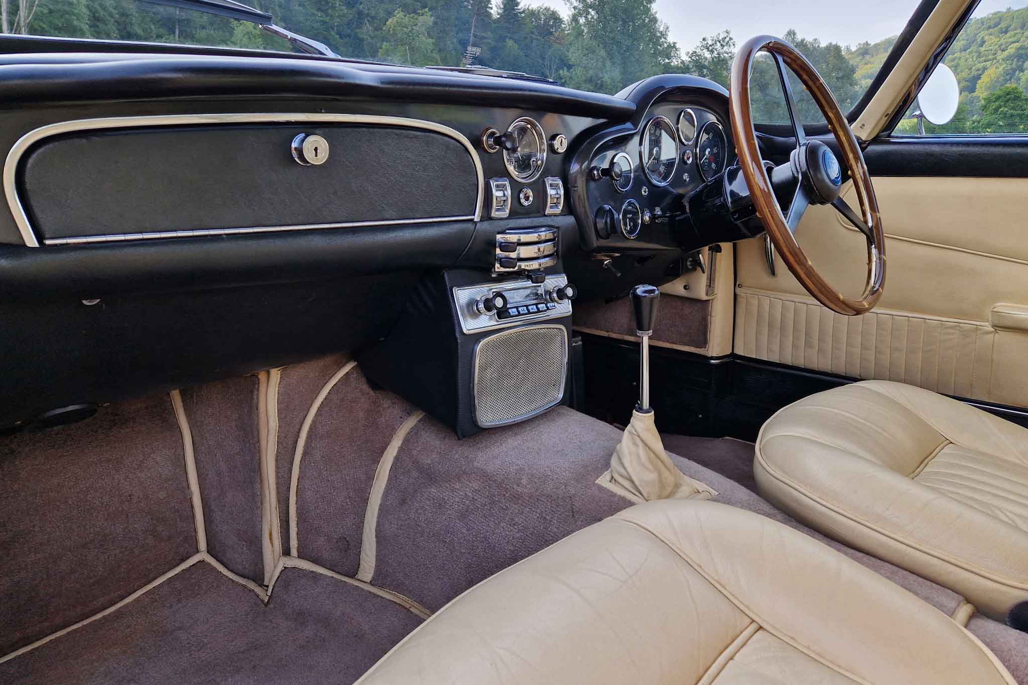 Im Jahr 1993 wurde dieser wunderschöne Aston Martin DB5 vom letzten Besitzer erworben und oft gefahren. Er wurde regelmässig von Aston Martin Spezialisten gewartet und sehr gut unterhalten. Vor einigen Jahren, im 2002, um genau zu sein, wurde unter anderem der Motor von Roos Engineering, Frauenkappelen, für über CHF 95’000.- komplett neu aufgebaut, Rechnungen sind vorhanden. Das Auto befindet sich, mit originalem Instruction Book, dem Build Sheet von Aston Martin und veteranen-geprüft, in hervorragendem Zustand.