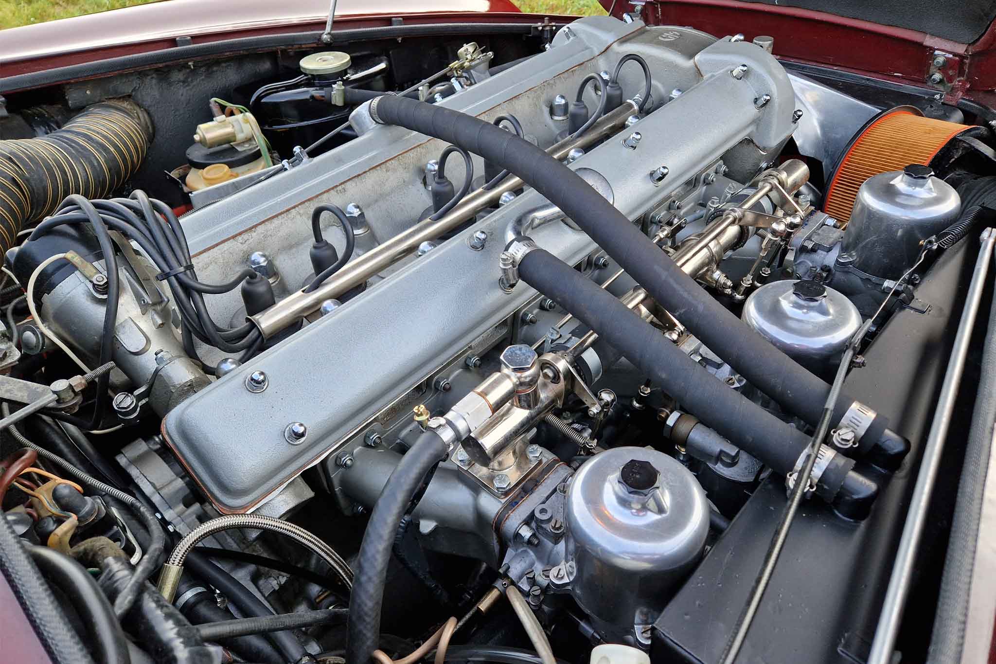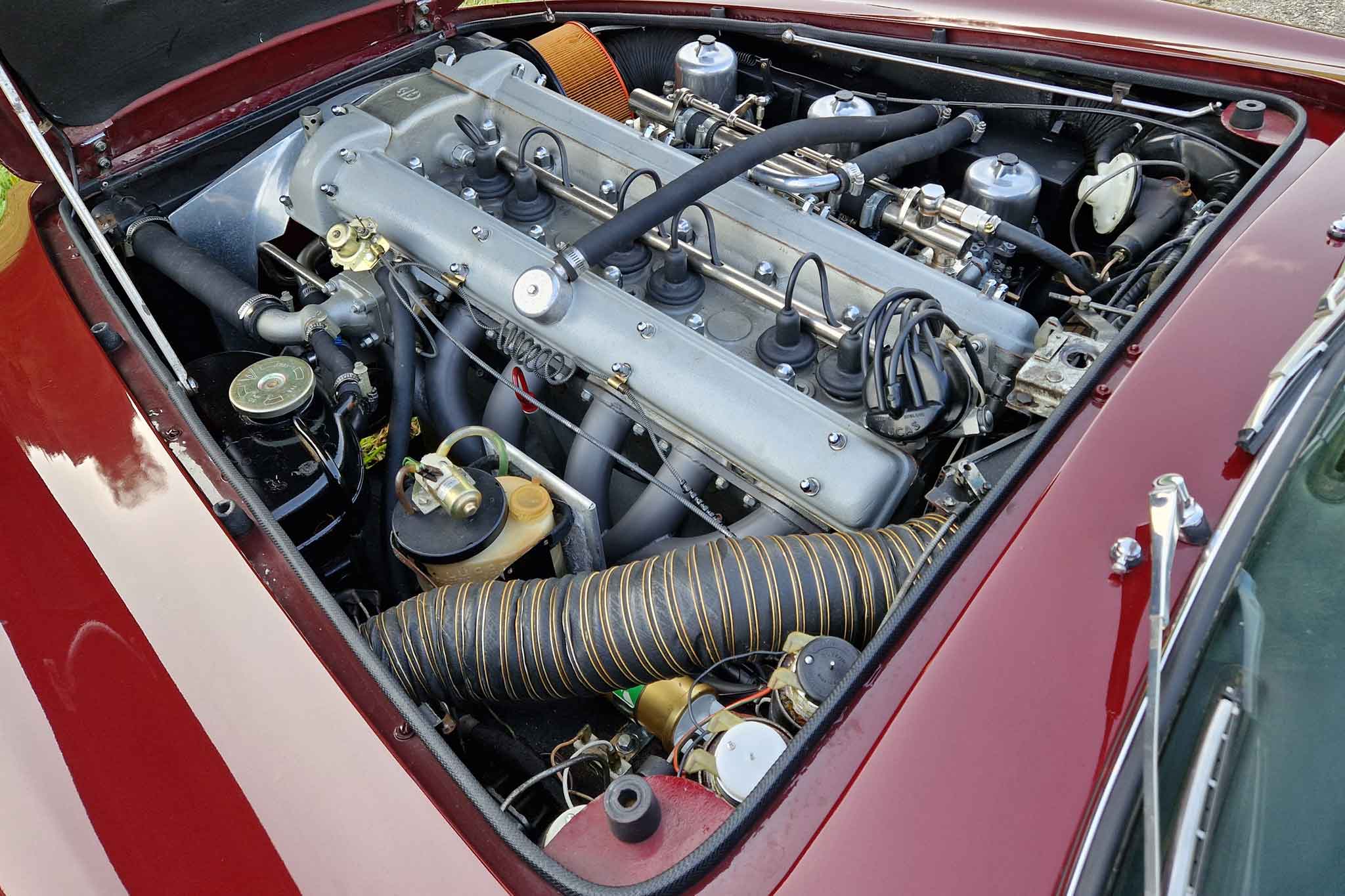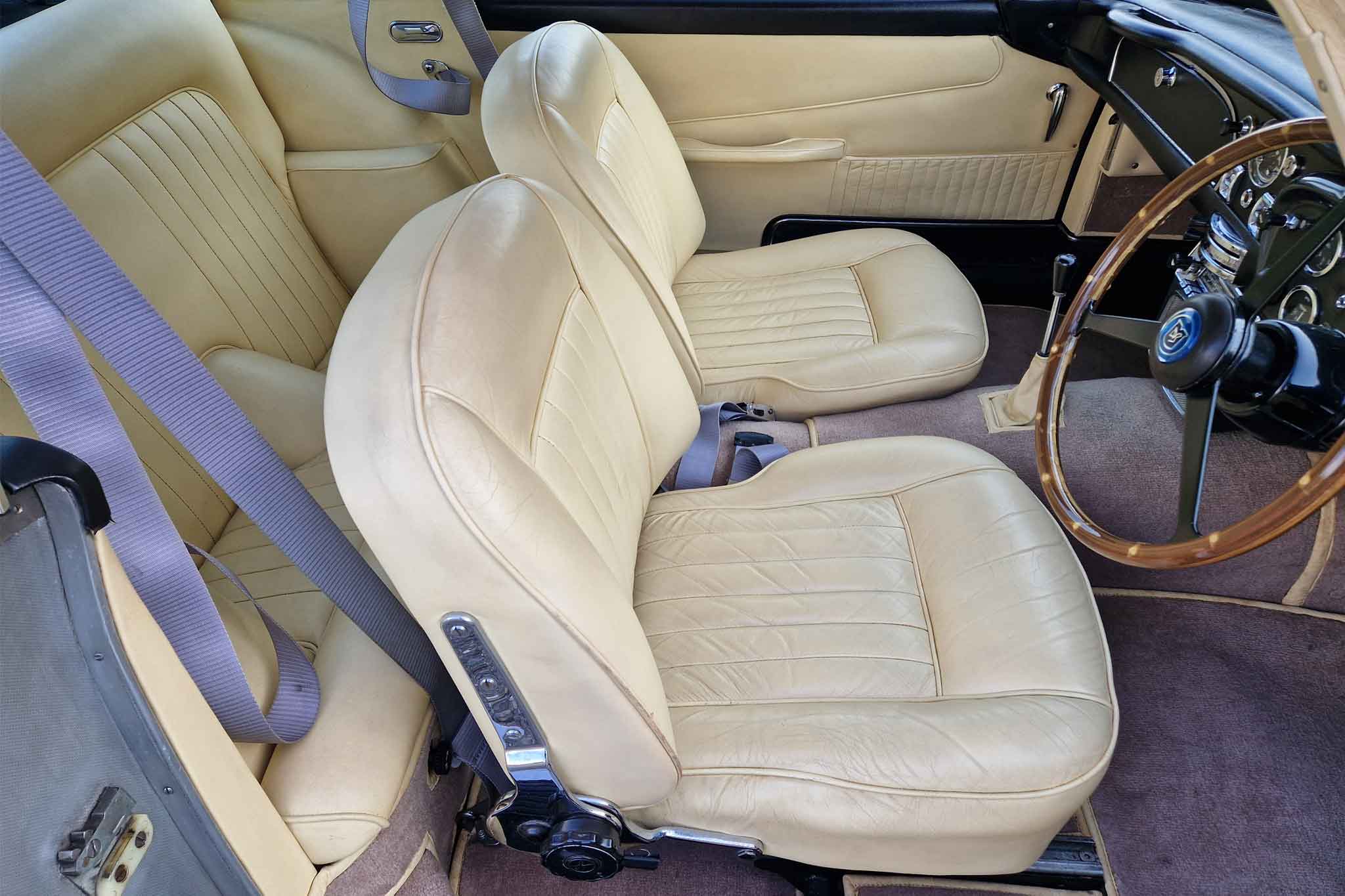 Im Jahr 1993 wurde dieser wunderschöne Aston Martin DB5 vom letzten Besitzer erworben und oft gefahren. Er wurde regelmässig von Aston Martin Spezialisten gewartet und sehr gut unterhalten. Vor einigen Jahren, im 2002, um genau zu sein, wurde unter anderem der Motor von Roos Engineering, Frauenkappelen, für über CHF 95’000.- komplett neu aufgebaut, Rechnungen sind vorhanden. Das Auto befindet sich, mit originalem Instruction Book, dem Build Sheet von Aston Martin und veteranen-geprüft, in hervorragendem Zustand.