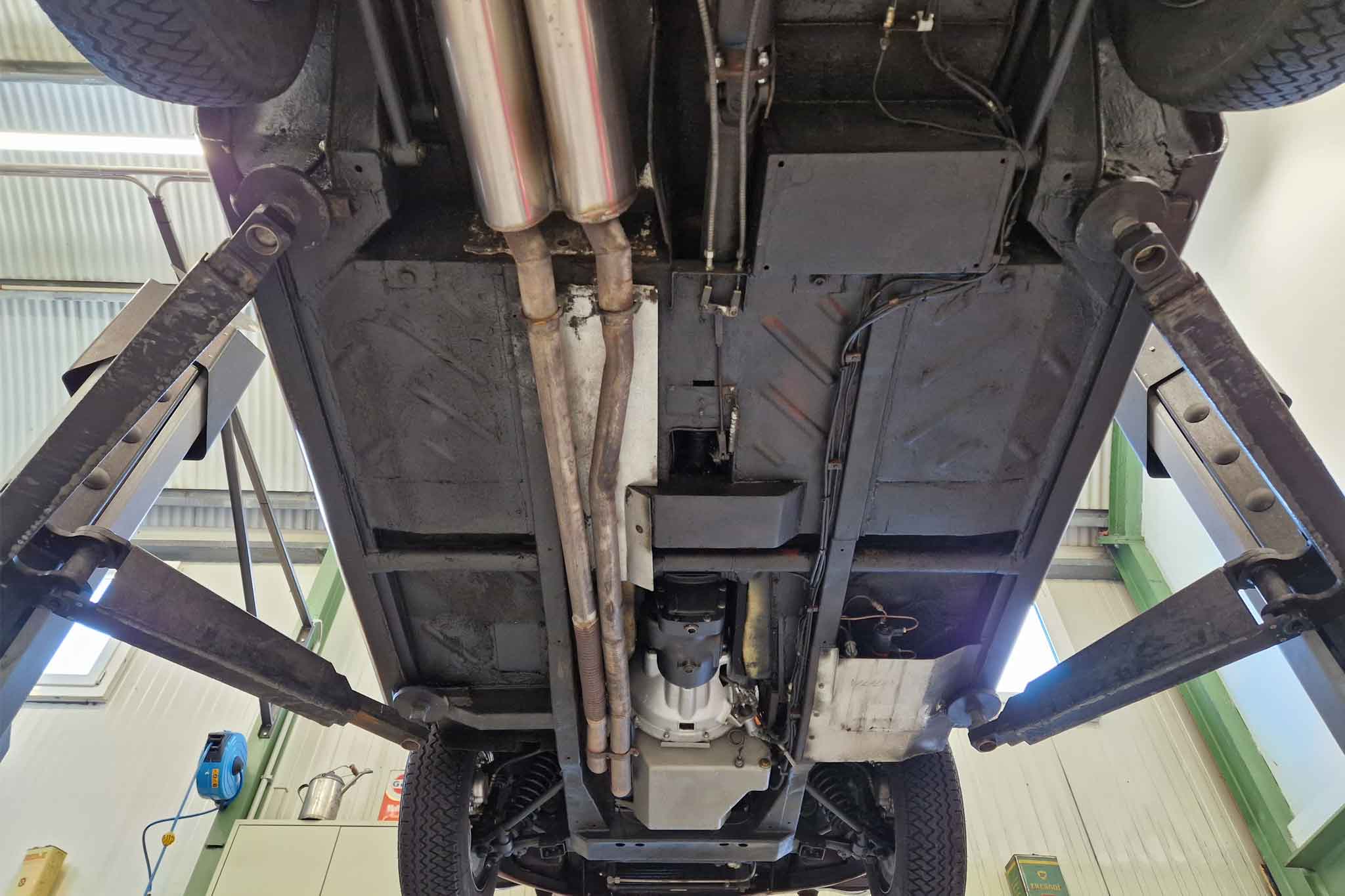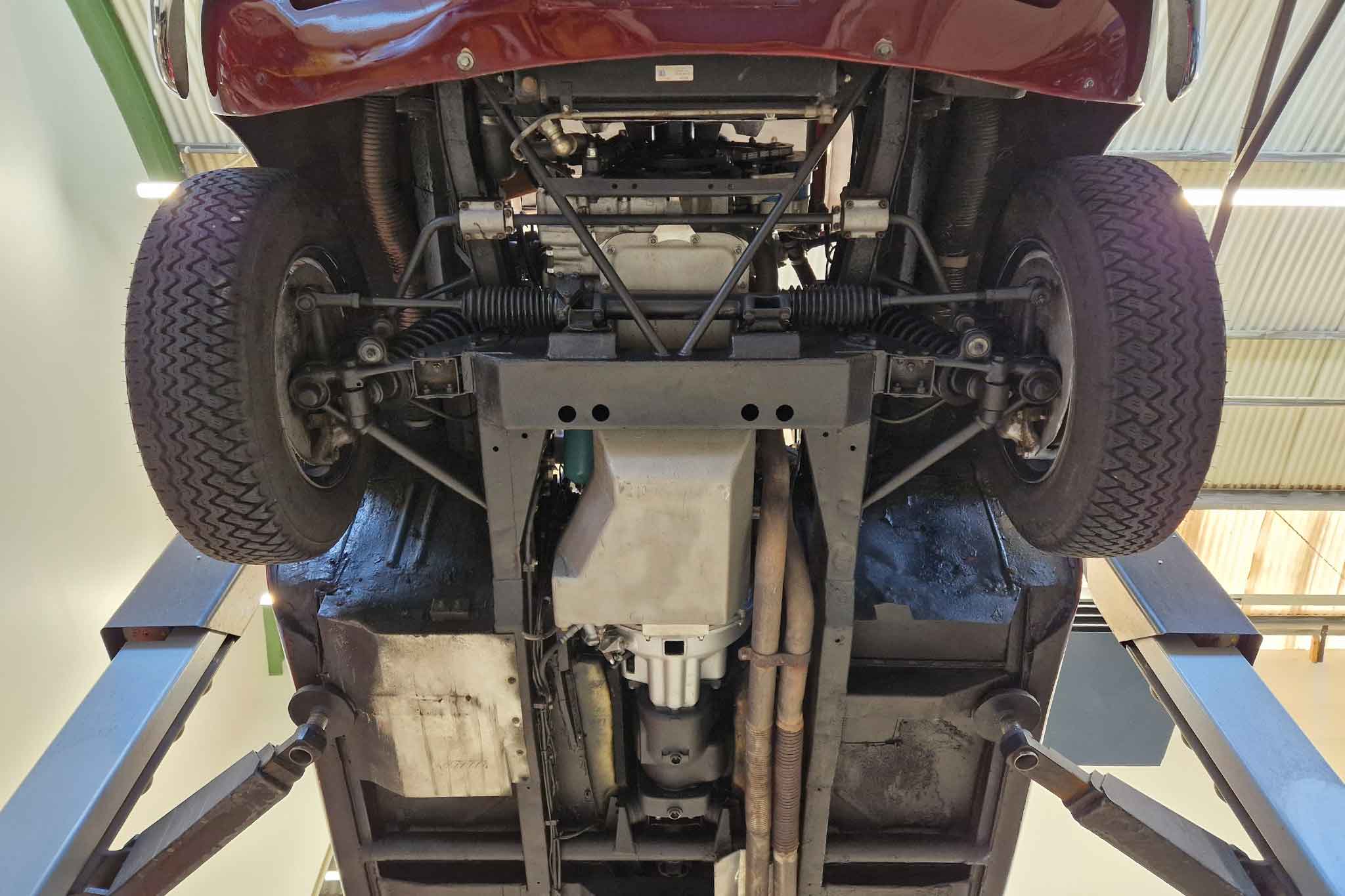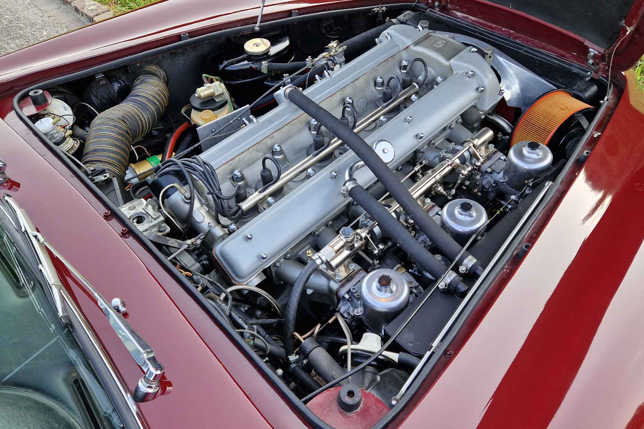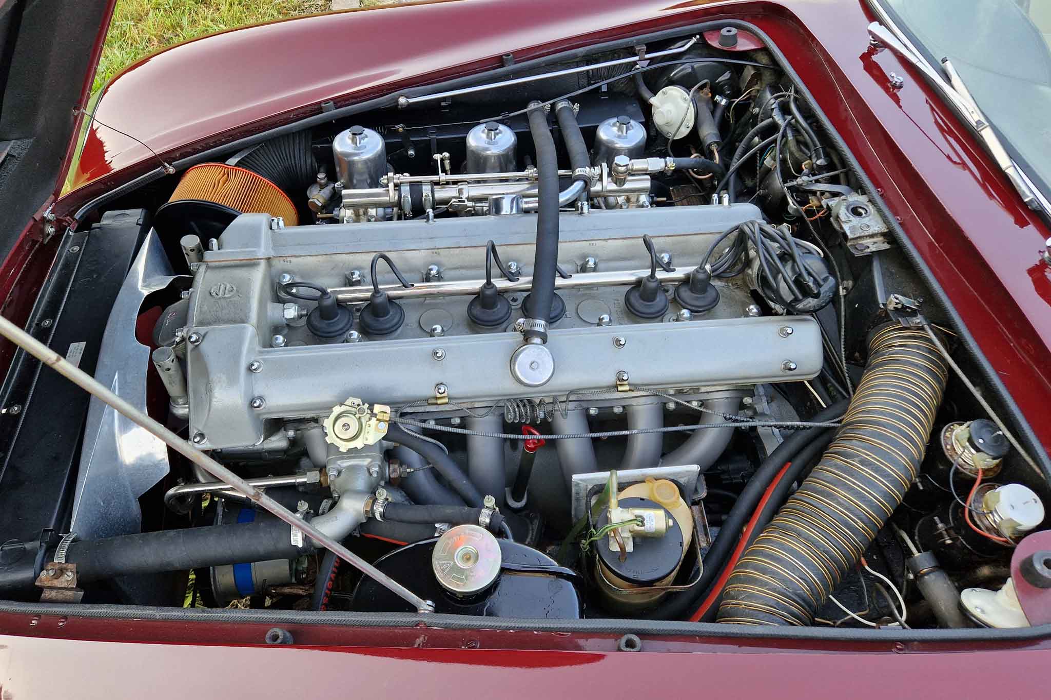 Im Jahr 1993 wurde dieser wunderschöne Aston Martin DB5 vom letzten Besitzer erworben und oft gefahren. Er wurde regelmässig von Aston Martin Spezialisten gewartet und sehr gut unterhalten. Vor einigen Jahren, im 2002, um genau zu sein, wurde unter anderem der Motor von Roos Engineering, Frauenkappelen, für über CHF 95’000.- komplett neu aufgebaut, Rechnungen sind vorhanden. Das Auto befindet sich, mit originalem Instruction Book, dem Build Sheet von Aston Martin und veteranen-geprüft, in hervorragendem Zustand.