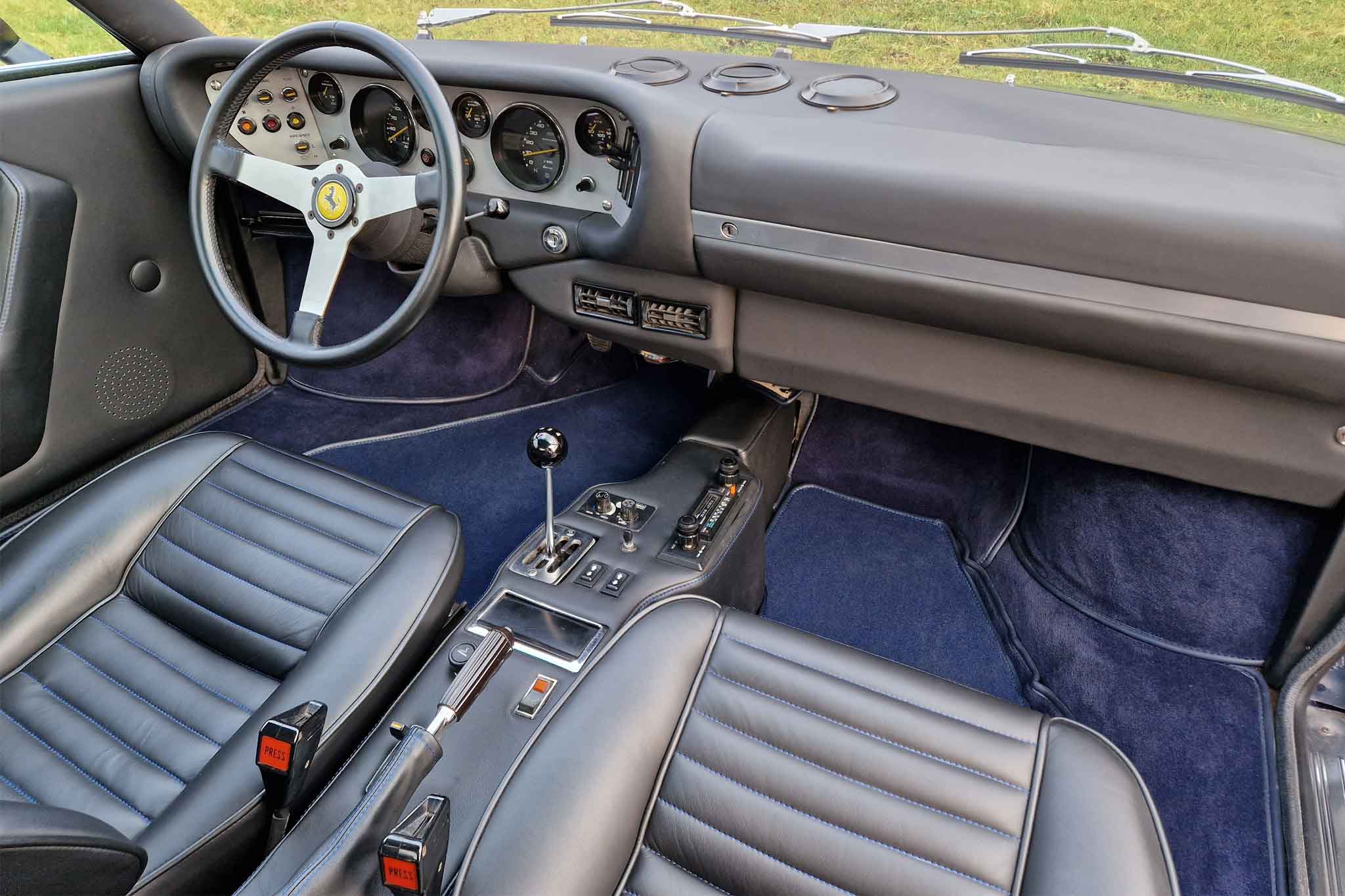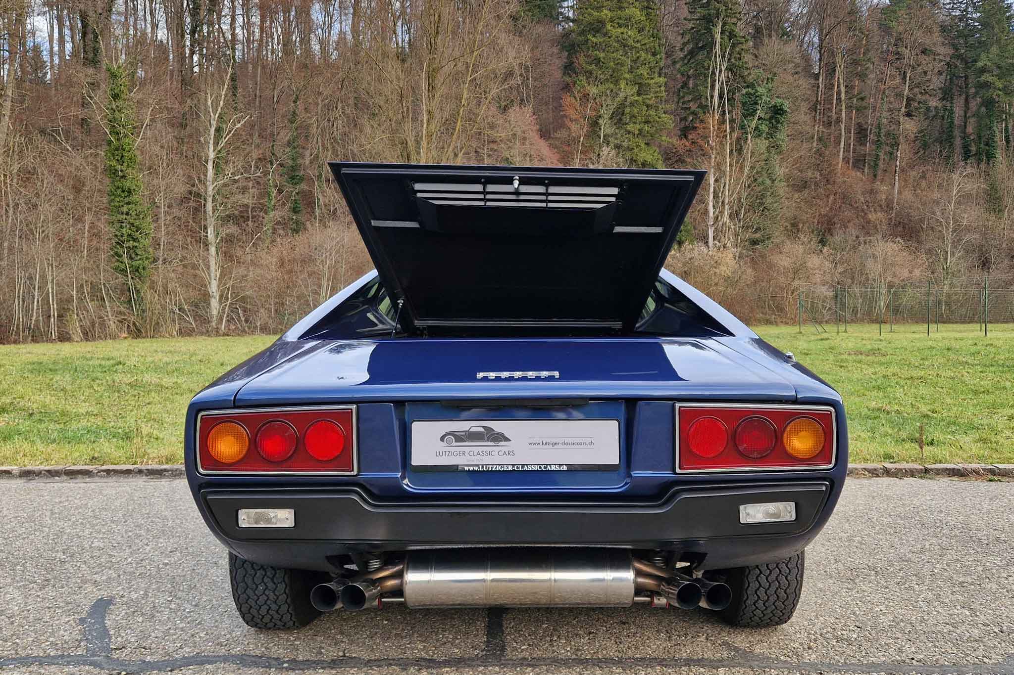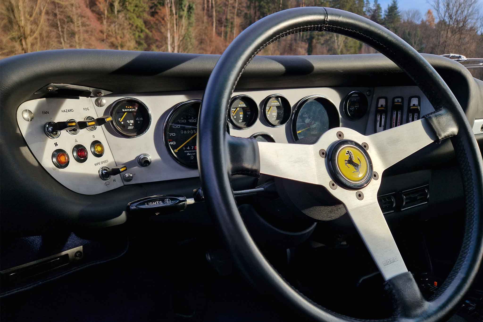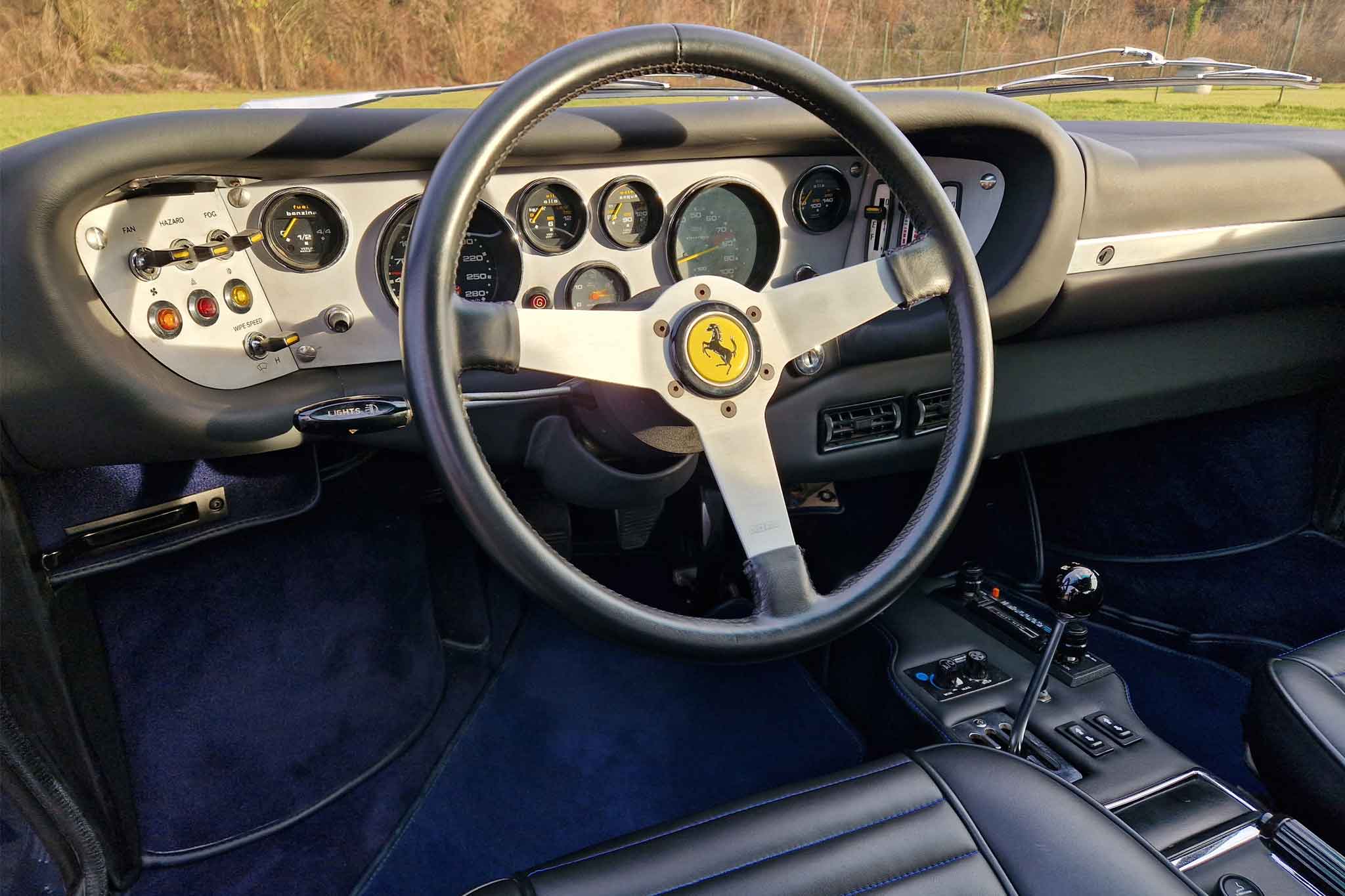 Beim hier angebotenen Ferrari Dino 308 GT4 handelt es sich um eine Schweizer Erstauslieferung im Dezember 1976 durch Ferrari Genf. Vor ca. 3’000 km wurden unter anderem der Motor, das Getriebe und Technik revidiert, die Kupplung ersetzt und das Interieur restauriert. Das Auto befindet sich, veteranen-geprüft, in wunderschönem und top gepflegtem Sammlerzustand. Das originale Gebrauchs- und Wartungshandbuch, ein Duplikat des Service- und Garantieheftes und das Bordwerkzeug sind ebenso vorhanden, wie viele Fotos der Restauration und weitere Unterlagen und Belege.