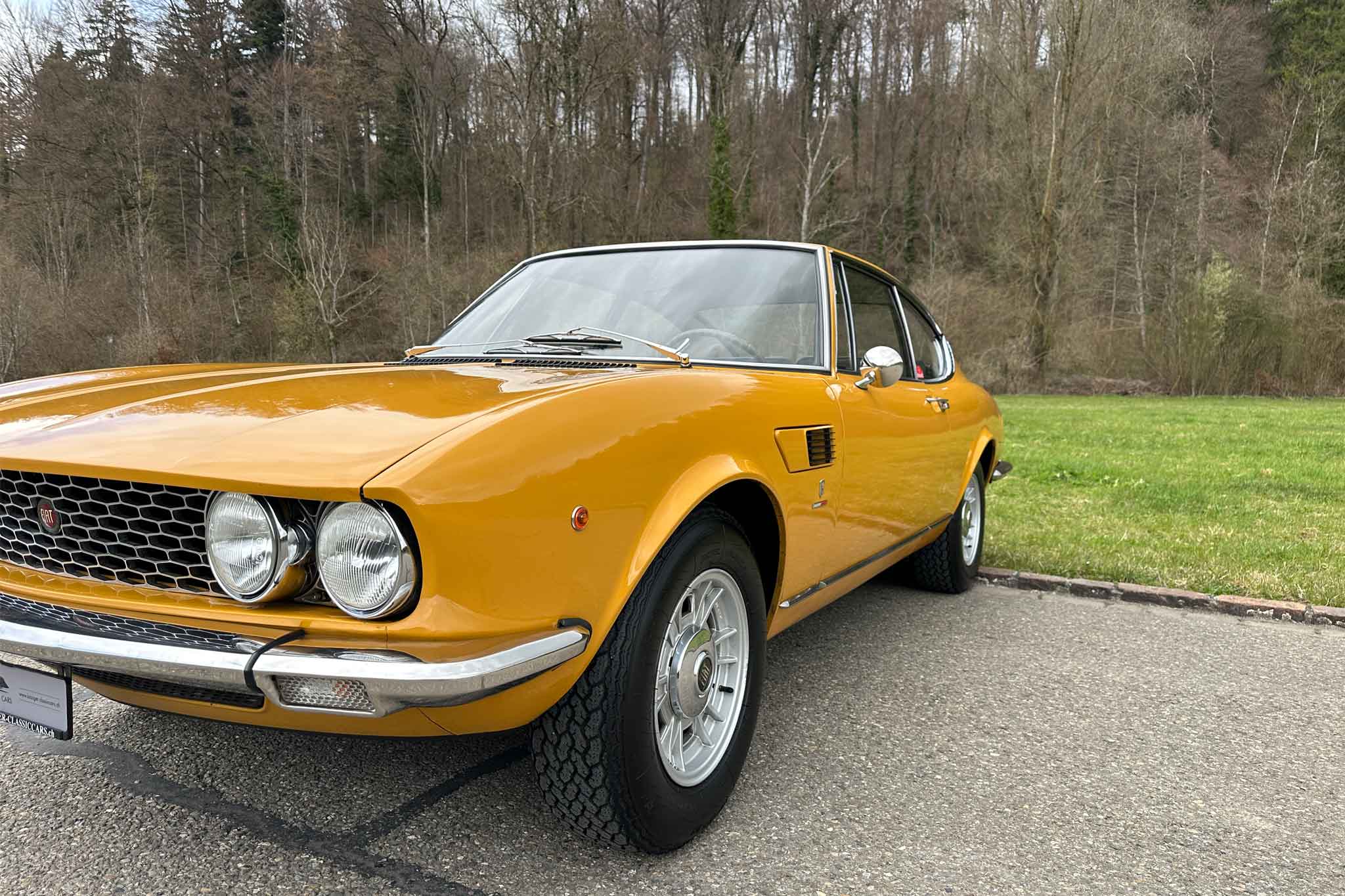 Im März 1967 wurde auf dem Genfer Autosalon der Fiat Dino als Coupé und Spider der Öffentlichkeit präsentiert. Dabei unterschieden sich beide Karosserievarianten erheblich im Design. Das war auch kein Wunder, denn das Coupé war von Bertone und der Spider von Pininfarina gezeichnet worden. Das Coupé wies einen um 270 Millimeter längeren Radstand auf und bot dadurch zwei zusätzliche Sitzplätze im Fond. Bei dem hier angebotenen Fiat Dino Coupé handelt es sich um die 2.0-Liter Motorvariante. Im Gegensatz zum 2.4-Liter mit Grauguss-Motorblock, ist der etwas kleinere Motor vollständig aus Aluminium und belastet somit weniger die Vorderachse. Dies verleiht dem Coupé eine bessere Handlichkeit und mit einer hohen Leistung von 160 PS steht er mit einem geringeren Gesamtgewicht kaum der grösseren Hubraumvariante nach. Diese Motoren wurden auch im Ferrari Dino 206 und 246 eingesetzt.