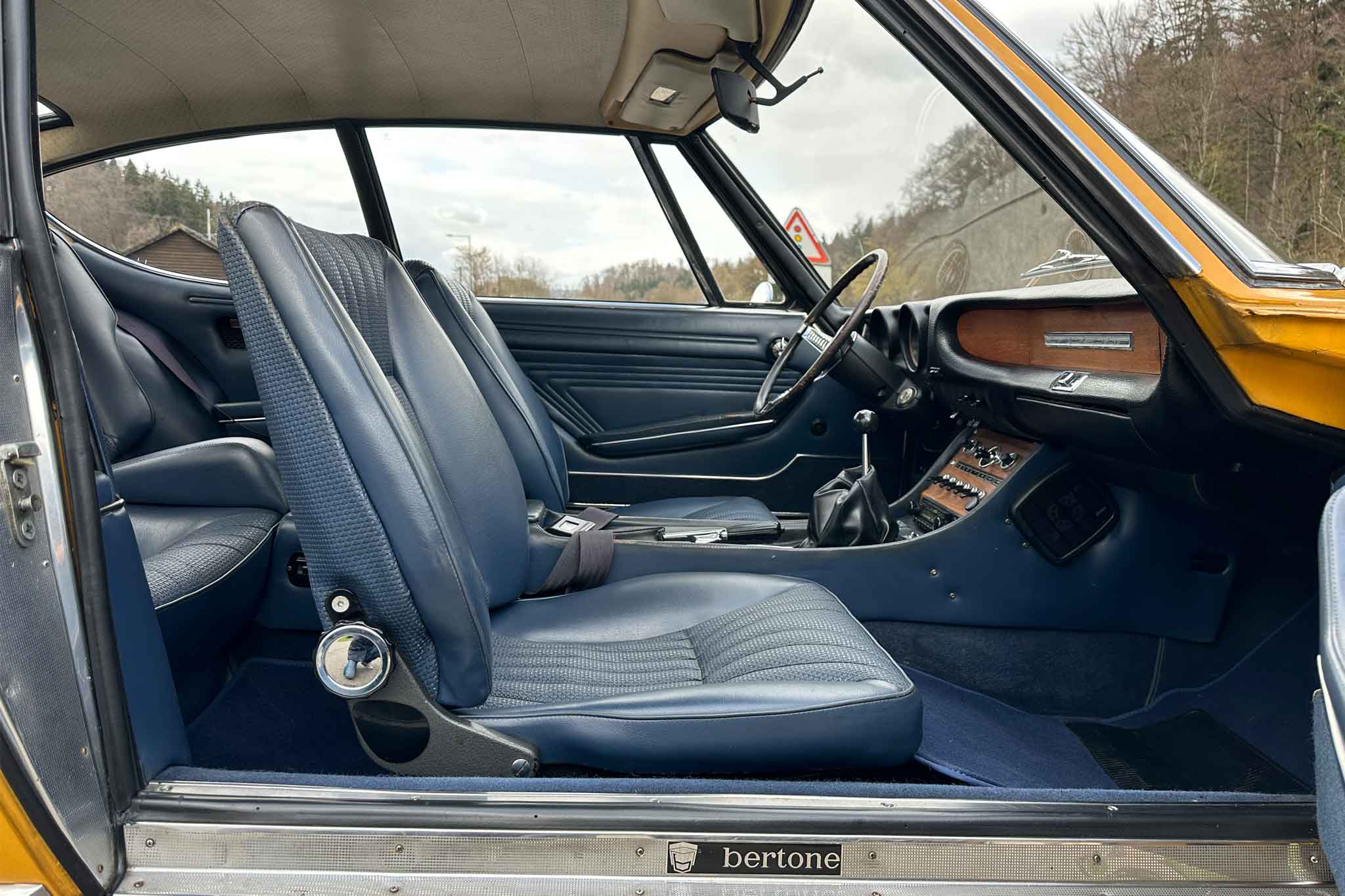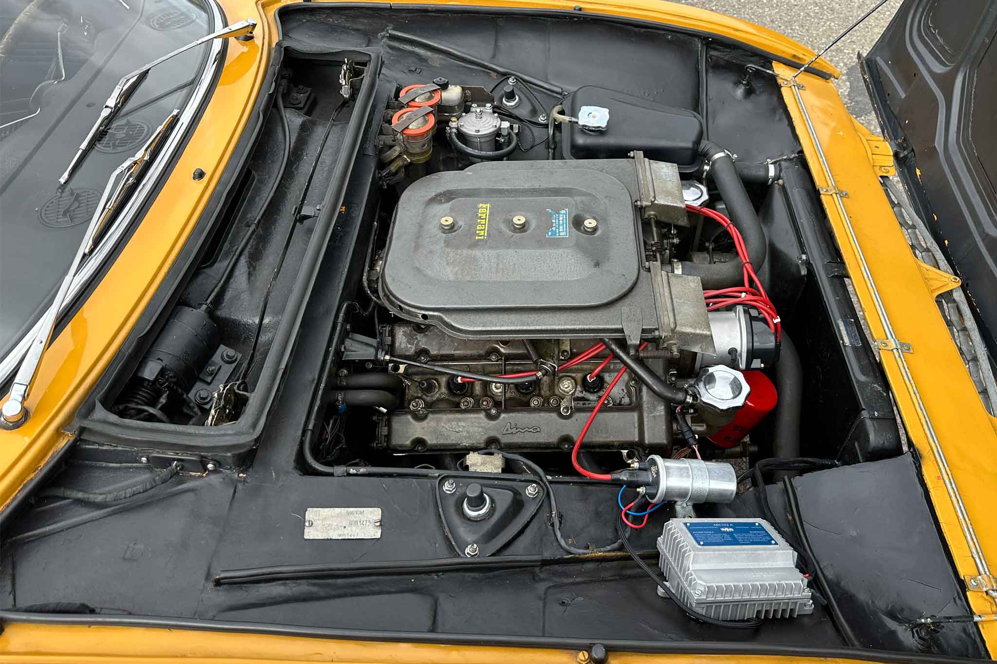 Dieses wunderschöne Fiat Dino 2000 Coupé, in der Farbe Giallo Positano und mit Interieur Blu Scuro, wurde stets sehr sorgfältig gepflegt und regelmässig gewartet. Mit neuen Stossdämpfern und auf elektronische Zündung umgebaut, steht es für einen neuen Liebhaber bereit. Der Wagenheber und das Bordwerkzeug sind vorhanden, ebenso ein kompletter, neu auf Mass gefertigter Teppichsatz.