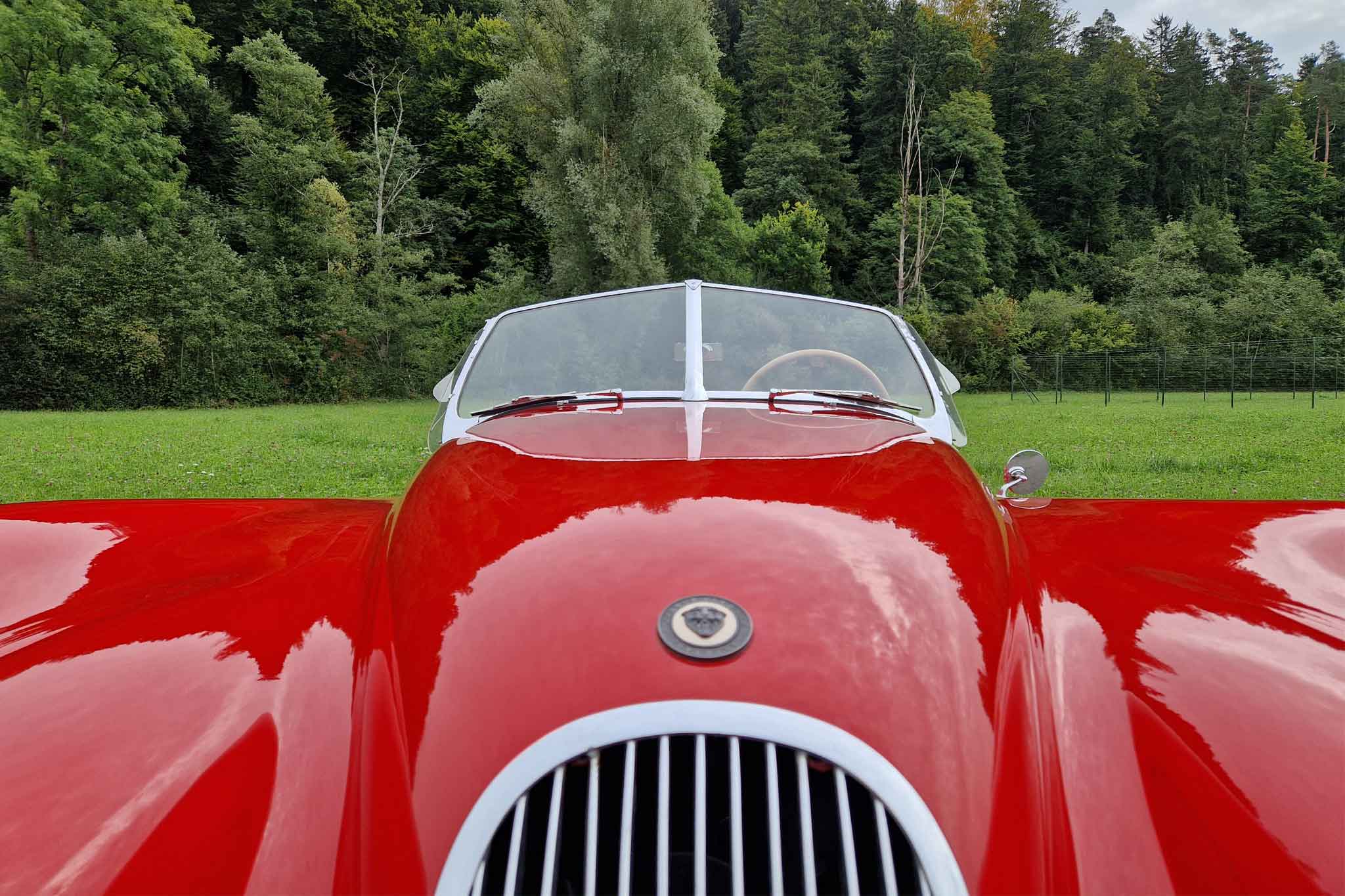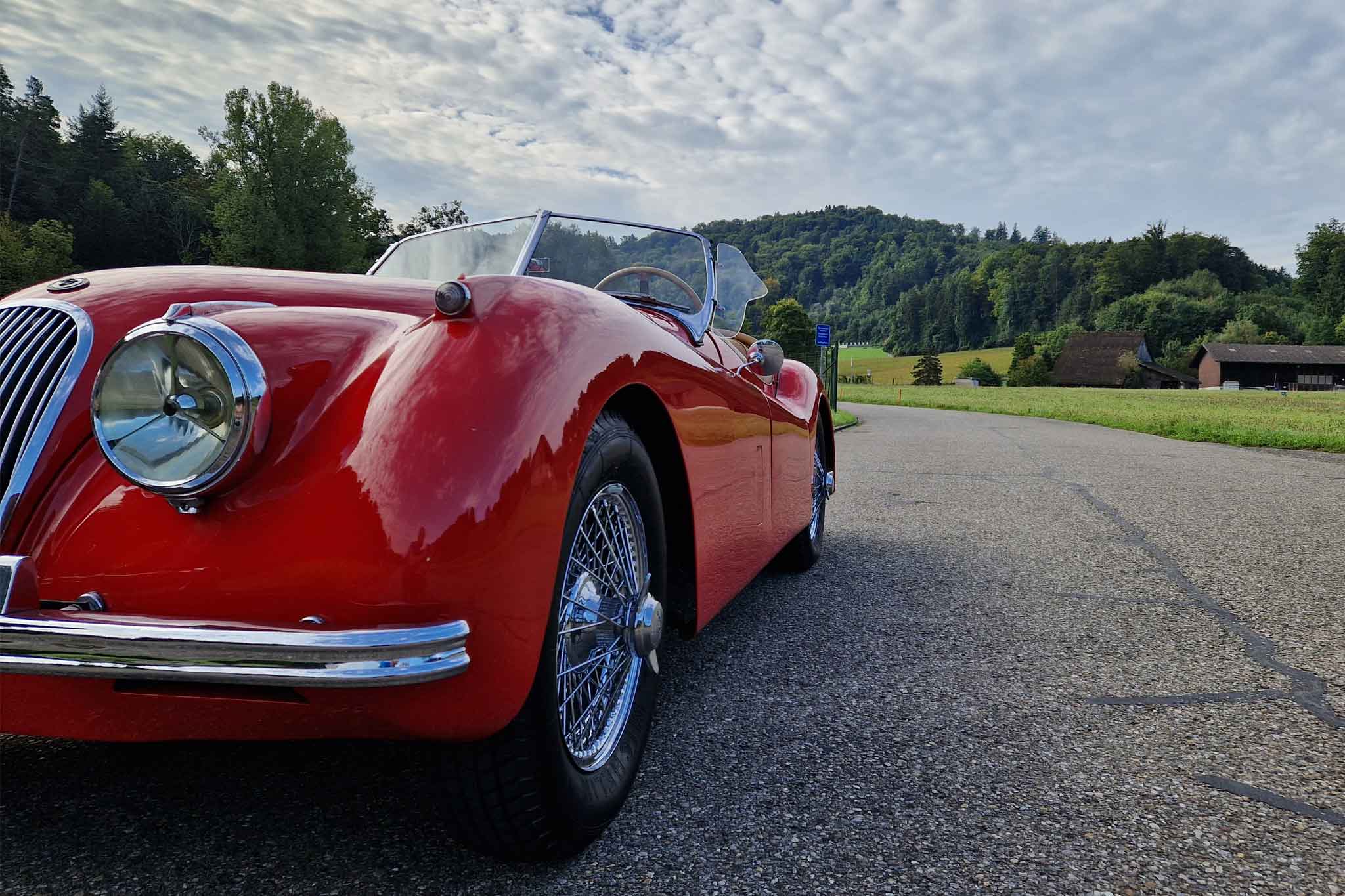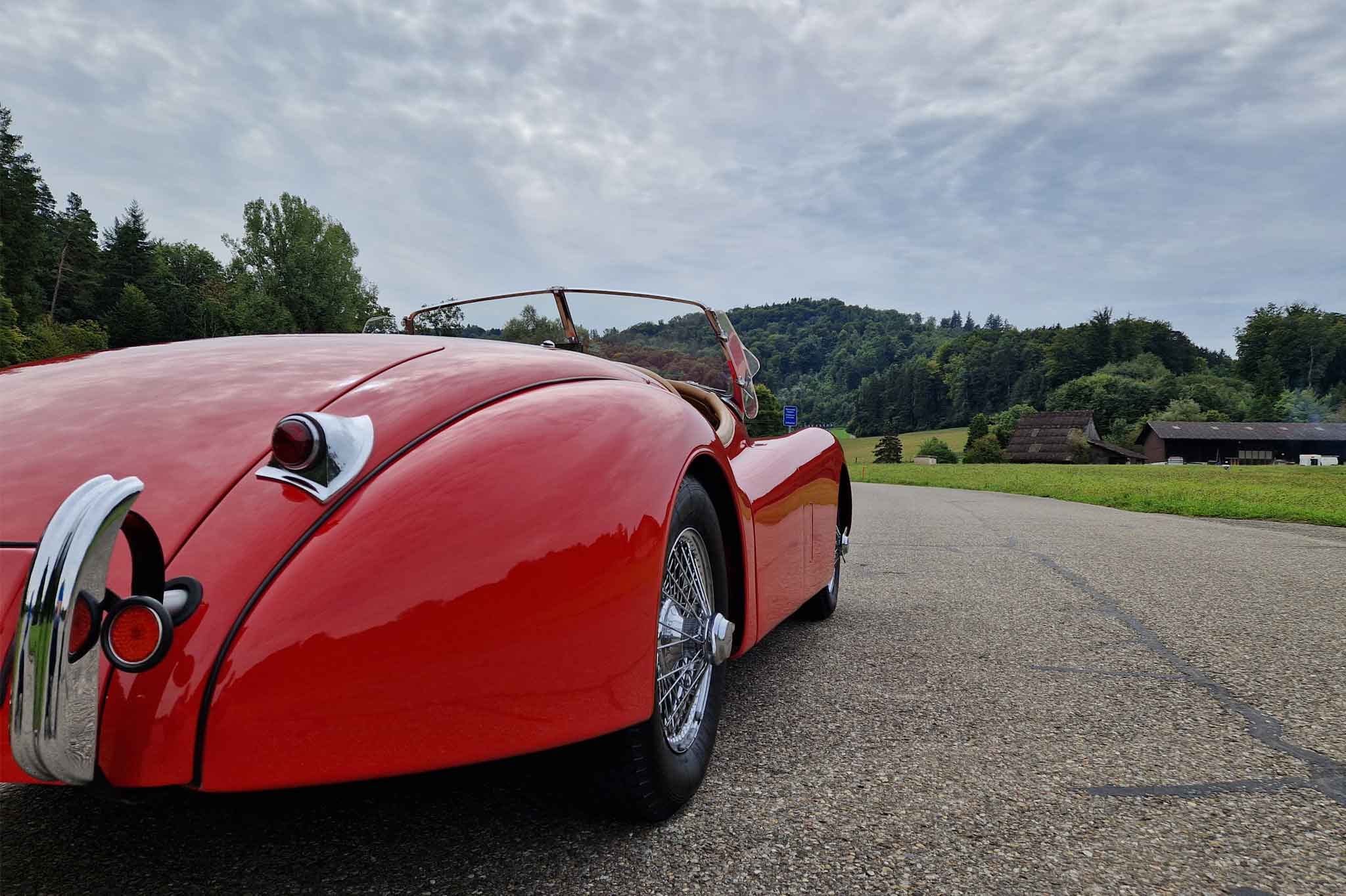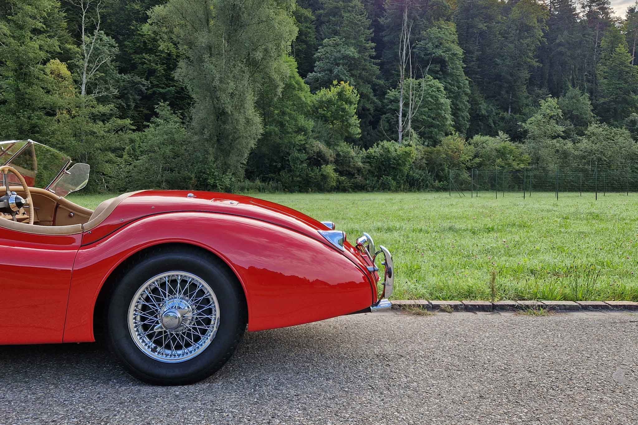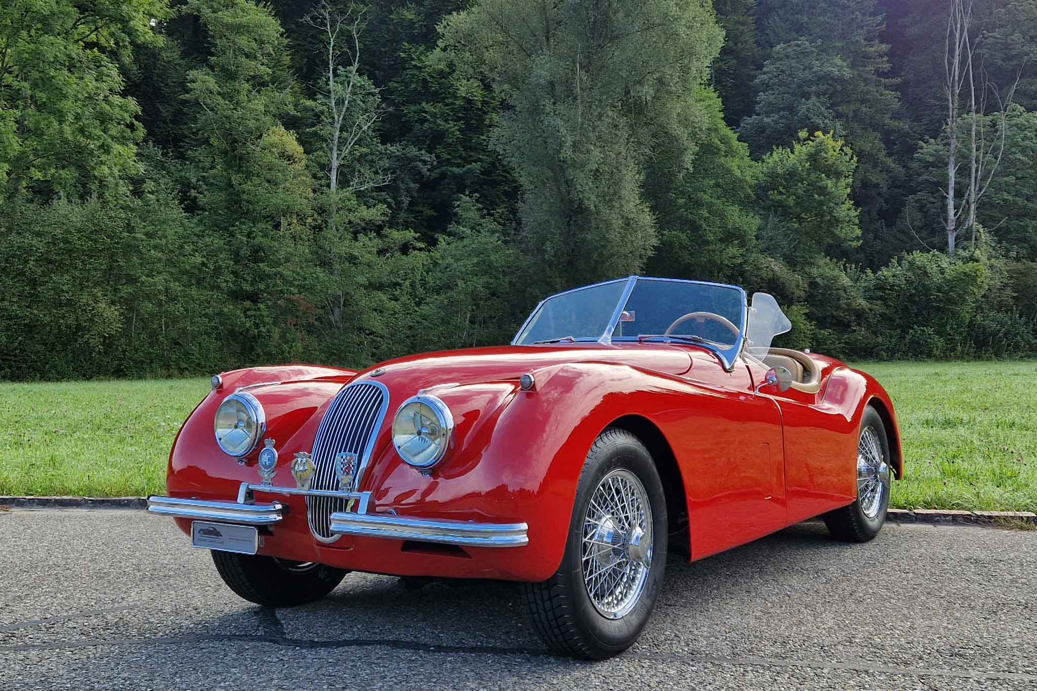 Jaguar XK 120 OTS – ein ikonischer Roadster, dessen zeitlos elegantes Design und technische Exzellenz Automobilgeschichte geschrieben haben. Er war seiner Zeit schnellster Serienwagen – ein wahrer Meilenstein. Der Serienmotor leistete etwa 160 PS, während später optional die SE-Version (Special Equipment) mit etwa 180 PS erhältlich war.