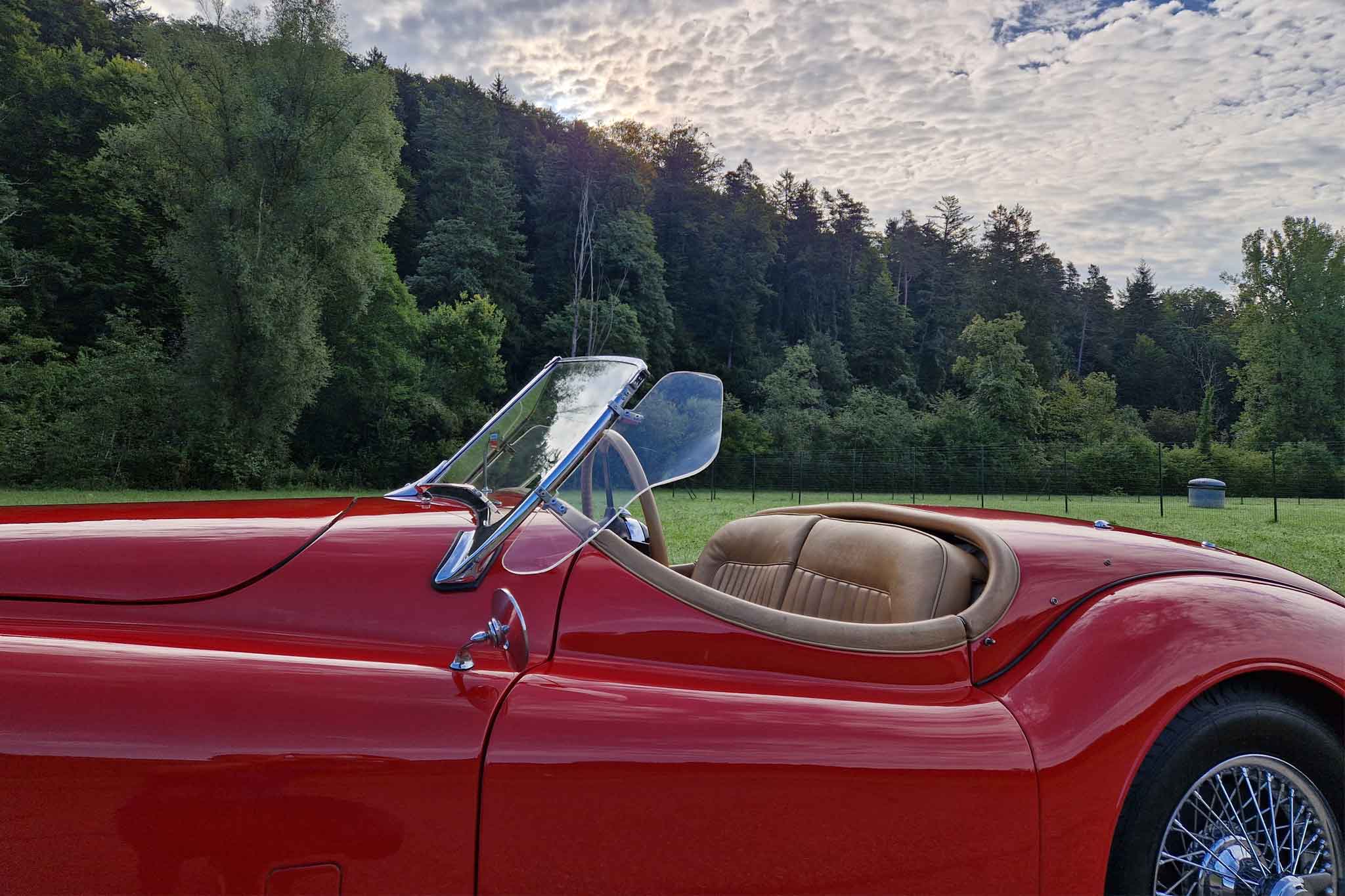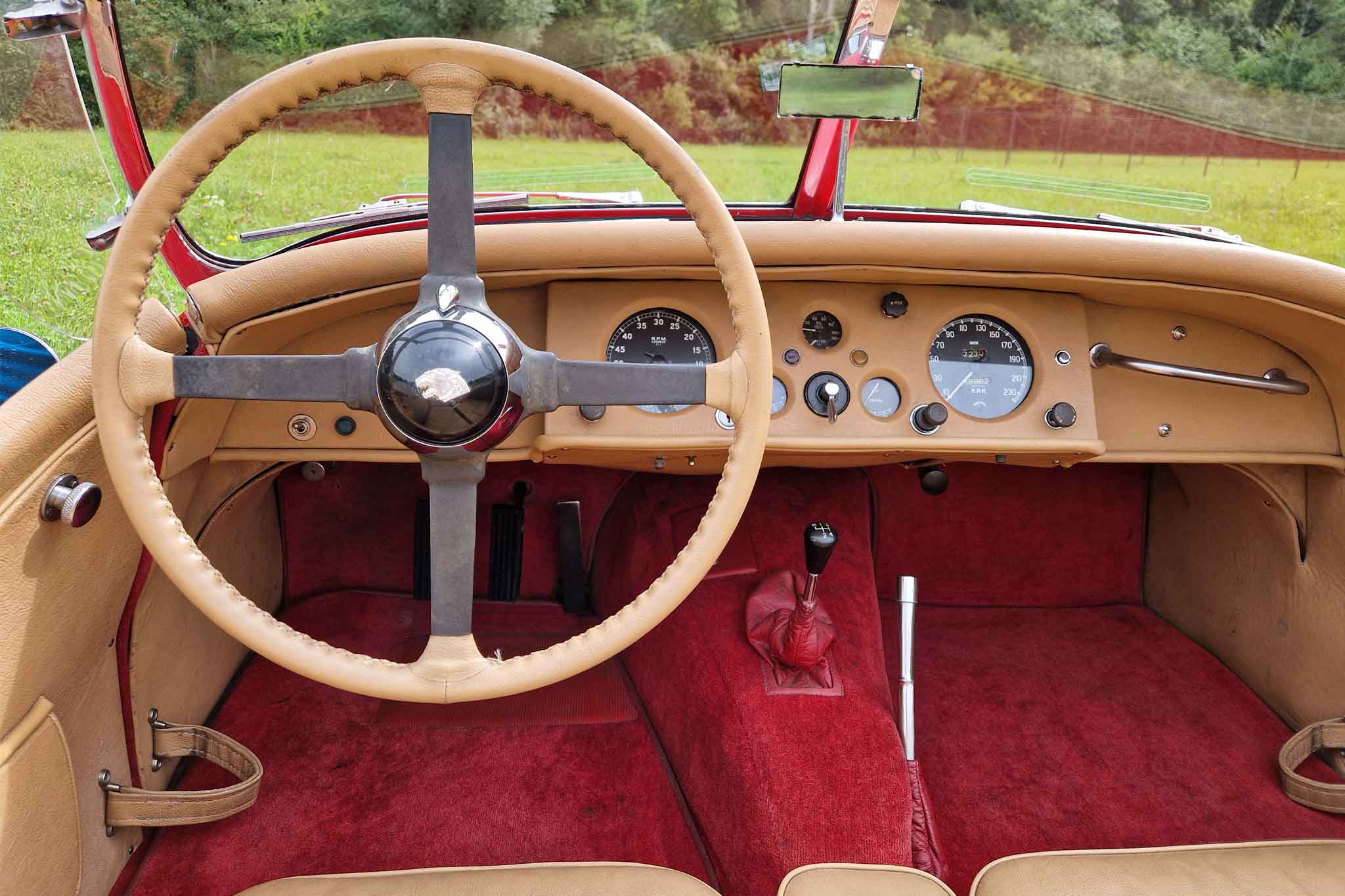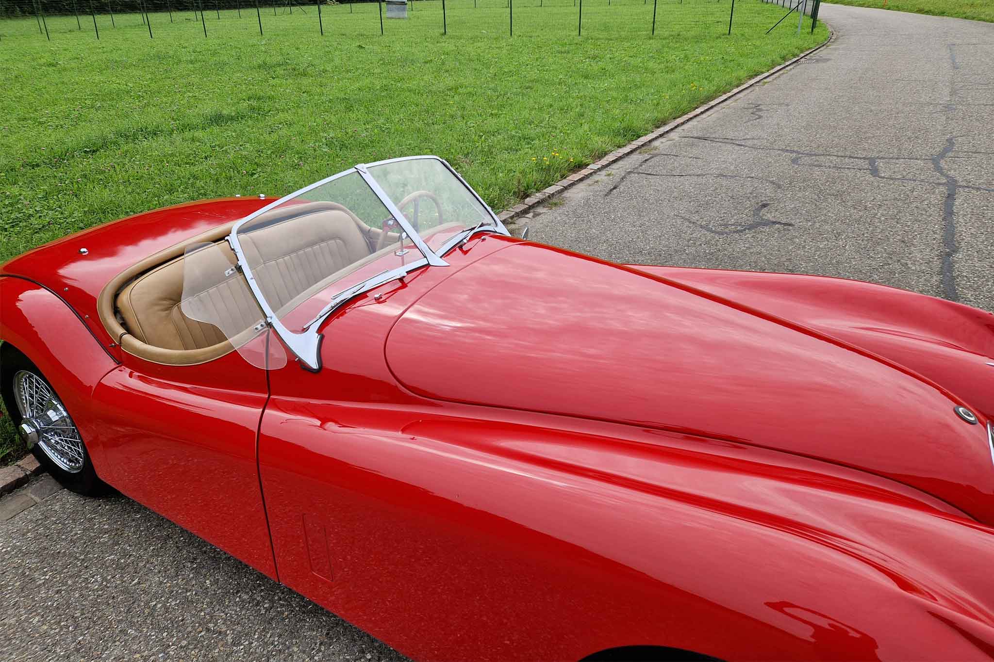 Beim hier angebotenen Jaguar XK 120 SE Open Two Seater, handelt es sich um eine solche Special Equipment-Version. Das Auto stammt aus einem Nachlass mit grosser Sammlung und die Fahrzeughistorie ist uns leider nicht bekannt. Dieser wunderschöne Jaguar XK 120 SE OTS ist matching numbers und befindet sich in sehr gepflegtem und gutem Zustand. Bei Verkauf werden ein frischer Service und MFK-Veteran ausgeführt. Das originale Betriebs-, Wartungs- und Servicehandbuch sowie die seitlichen Steckscheiben und das Spritzverdeck sind vorhanden.