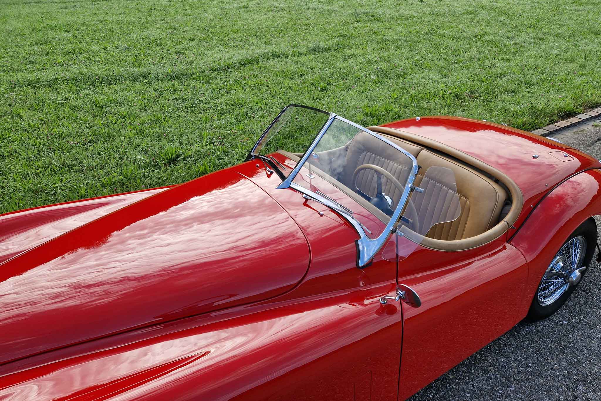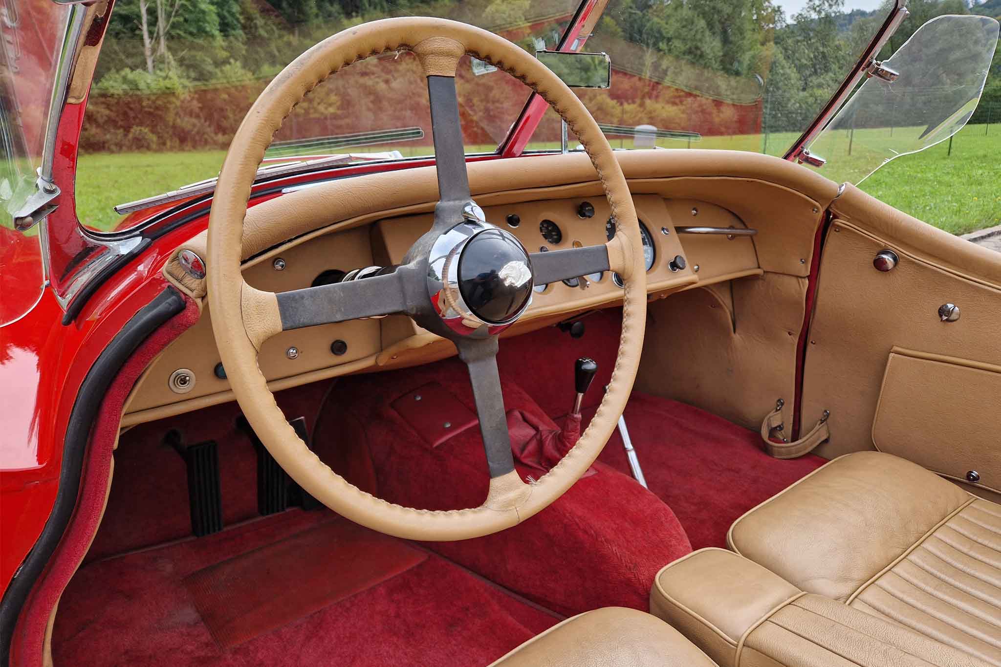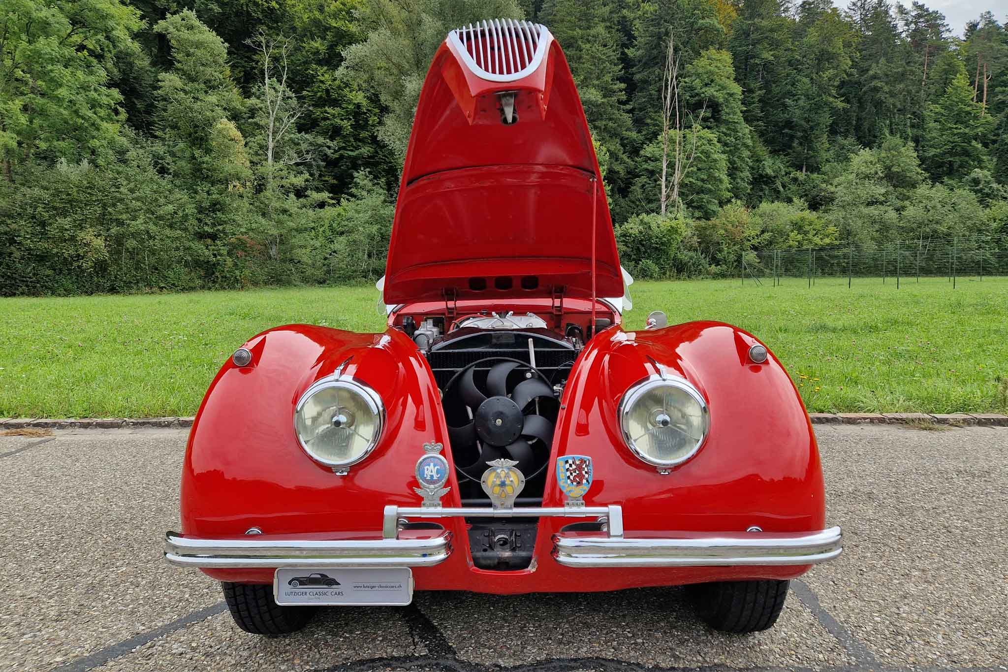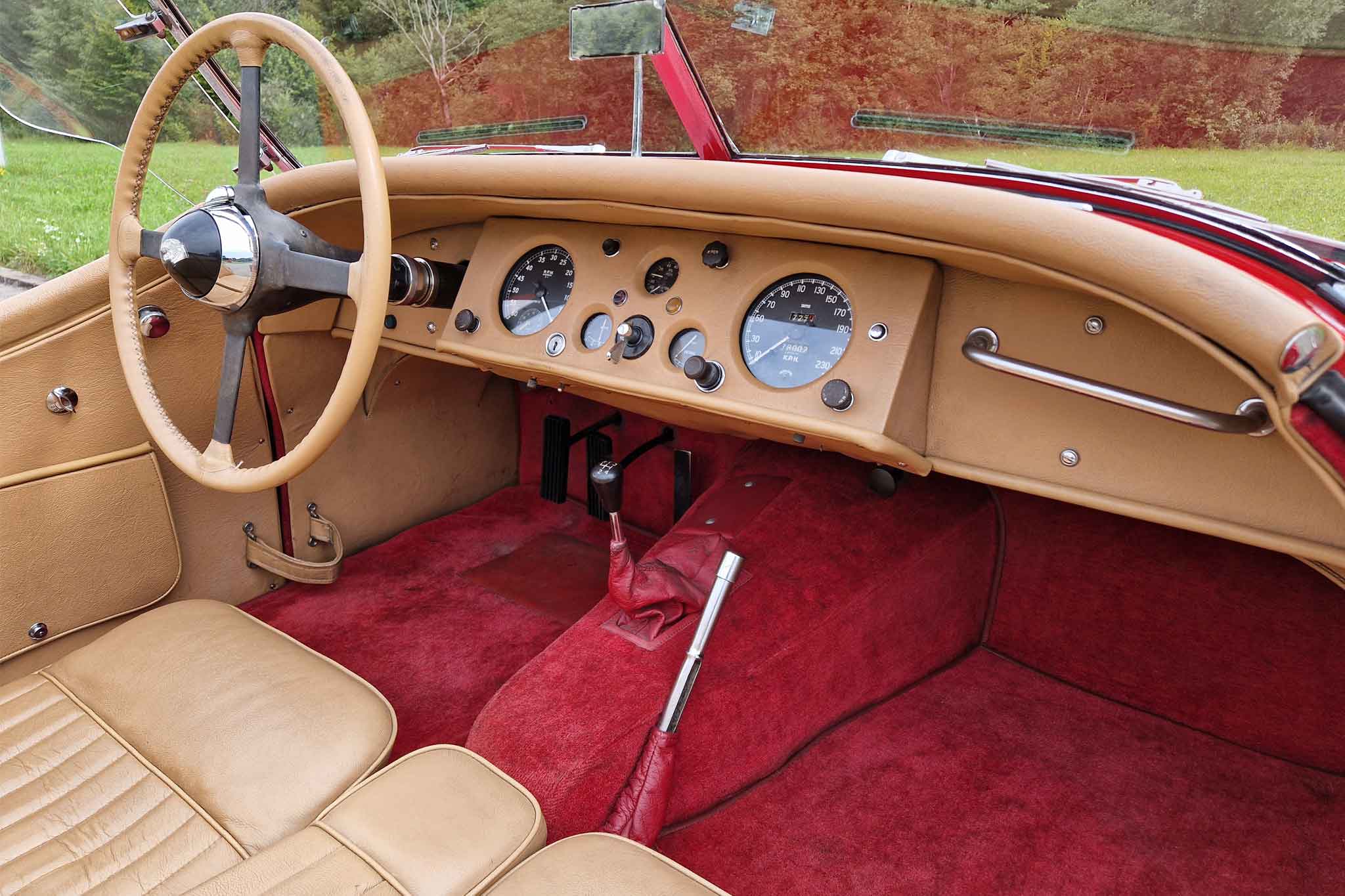 Beim hier angebotenen Jaguar XK 120 SE Open Two Seater, handelt es sich um eine solche Special Equipment-Version. Das Auto stammt aus einem Nachlass mit grosser Sammlung und die Fahrzeughistorie ist uns leider nicht bekannt. Dieser wunderschöne Jaguar XK 120 SE OTS ist matching numbers und befindet sich in sehr gepflegtem und gutem Zustand. Bei Verkauf werden ein frischer Service und MFK-Veteran ausgeführt. Das originale Betriebs-, Wartungs- und Servicehandbuch sowie die seitlichen Steckscheiben und das Spritzverdeck sind vorhanden.