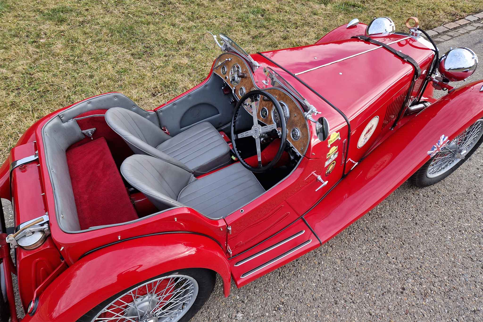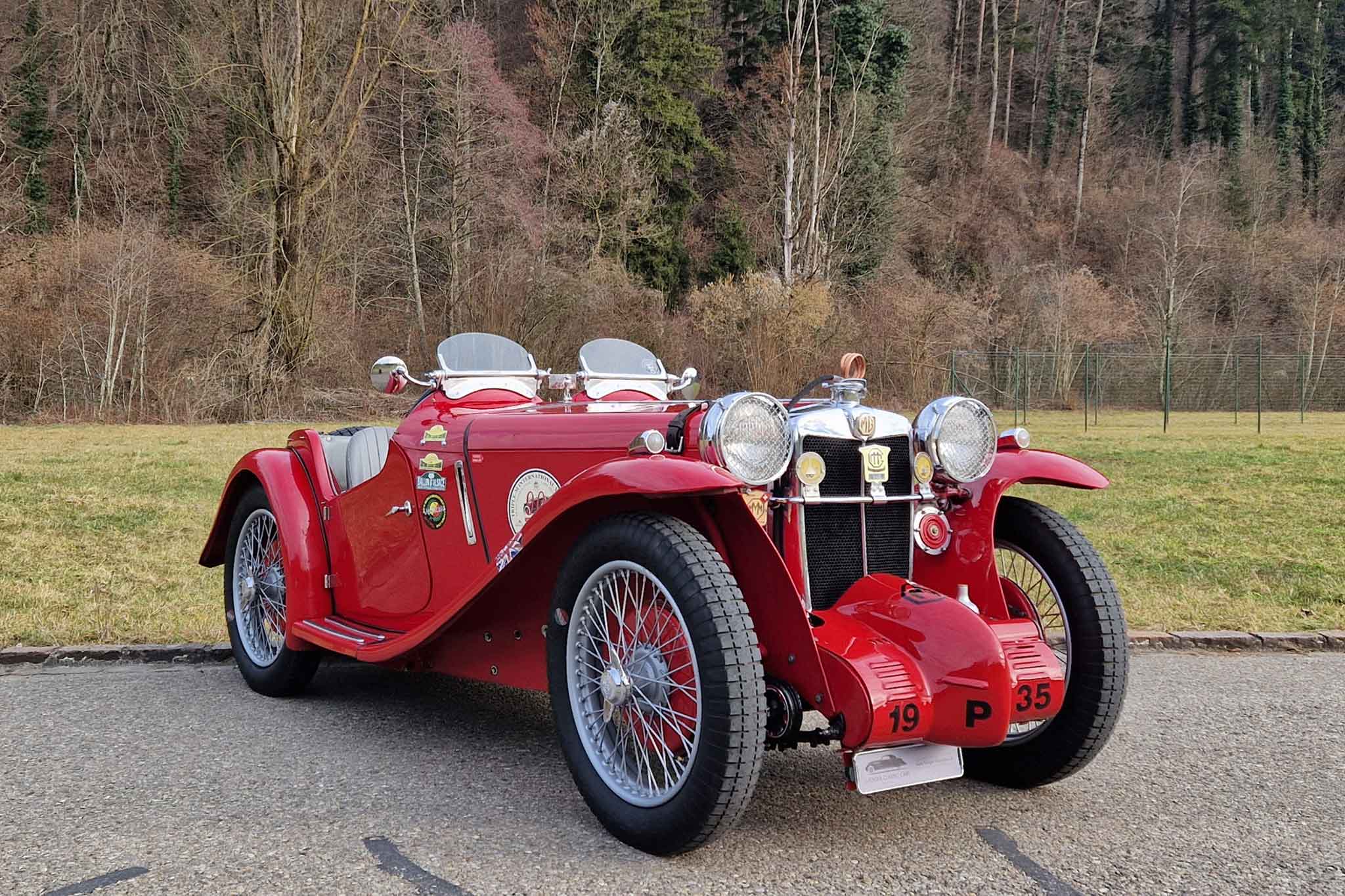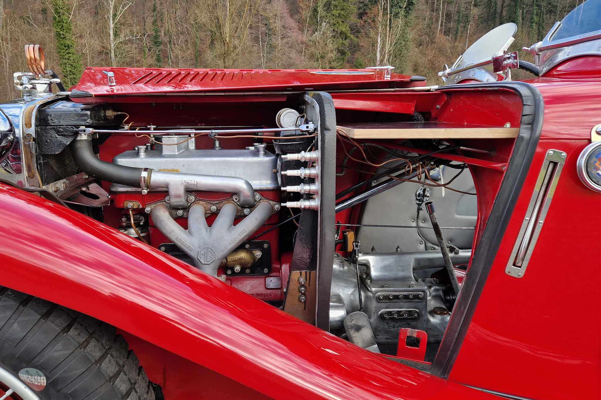 Der hier angebotene MG PA «Sports» wurde im Juli 1935 in England in der Farbe Rot ausgeliefert und erhielt die Registrierungsnummer MG 4124. Er verblieb über 75 Jahre im Vereinigten Königreich und wurde dort auch von 2004 bis 2005 vollrestauriert. Im Jahr 2010 wurde das Auto nach Frankreich verkauft, bevor es 7 Jahre später den Weg zu einem Schweizer Liebhaber und Enthusiasten fand, wo vor knapp 6’000 km der Motor und das Vorwählgetriebe revidiert wurden. Dieser wunderschöne MG PA «Sports» ist seit je her im Triple-M Register geführt und befindet sich, in seiner rennsporttauglichen Ausführung mit Kompressor für brachiale Leistung und Wilson-Vorwählgetriebe für schnellere und einfachere Gangwechsel als mit dem unsynchronisierten Serien-Vierganggetriebe, in top gepflegtem und gut unterhaltenem Sammlerzustand. Viele Unterlagen zurück bis 1935 wie eine Kopie der Werkskarte mit Auslieferungsdetails an den Erstbesitzer, Korrespondenz, Besitzerhistorie, das originale Registration Book, ein Benutzerhandbuch, Ersatzteilliste und das Triple-M Register sind ebenso vorhanden wie die Steckscheiben, lange Frontscheibe, das Verdeck und die originalen Sitze.
