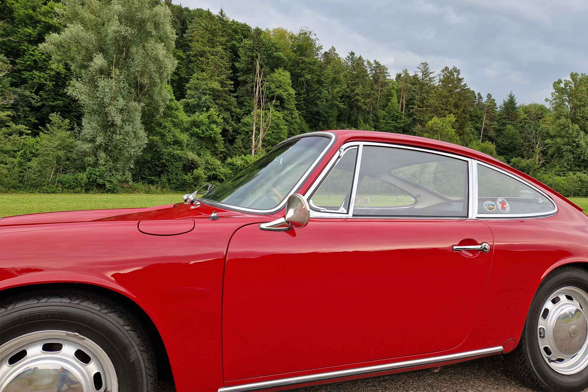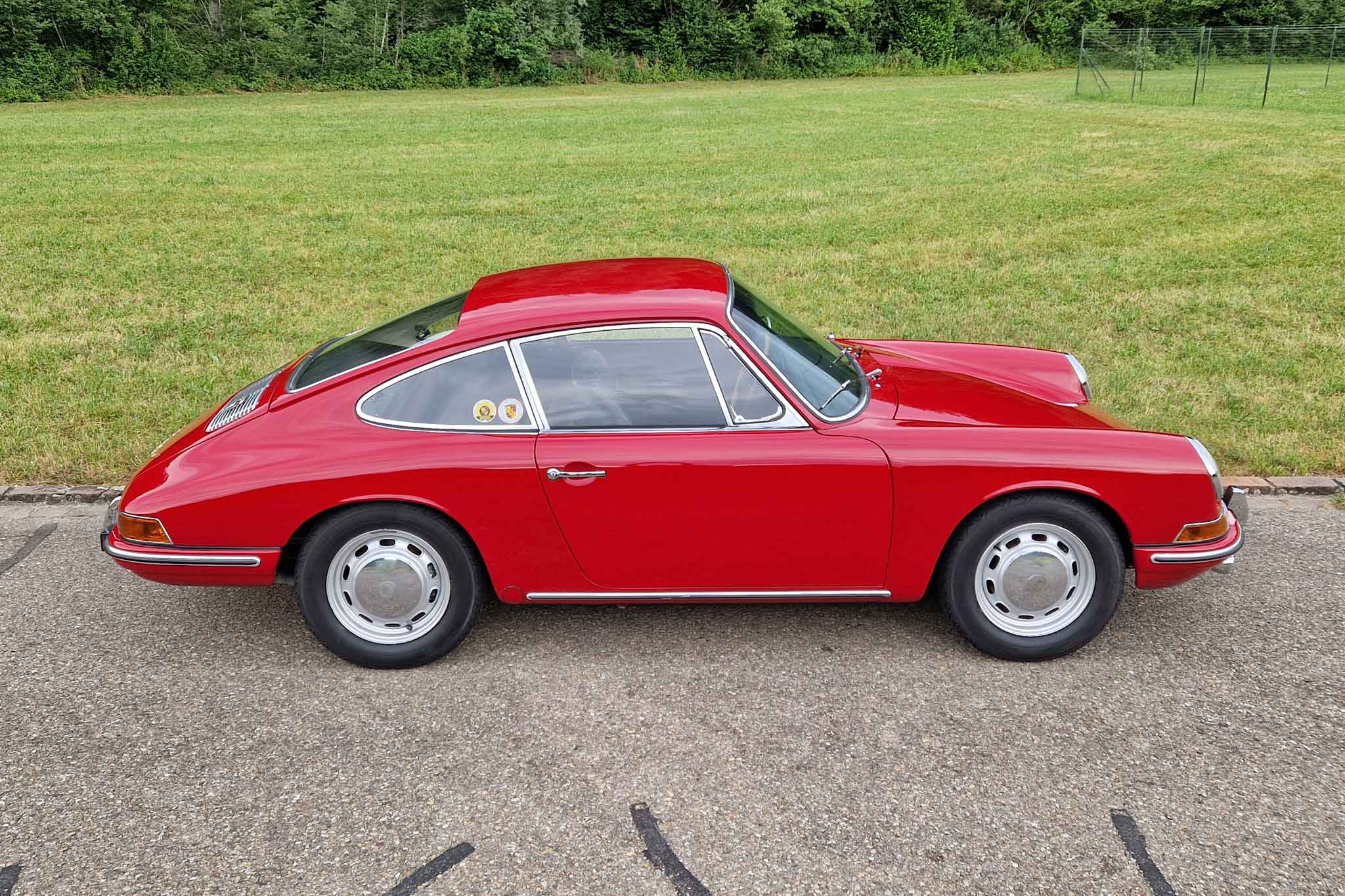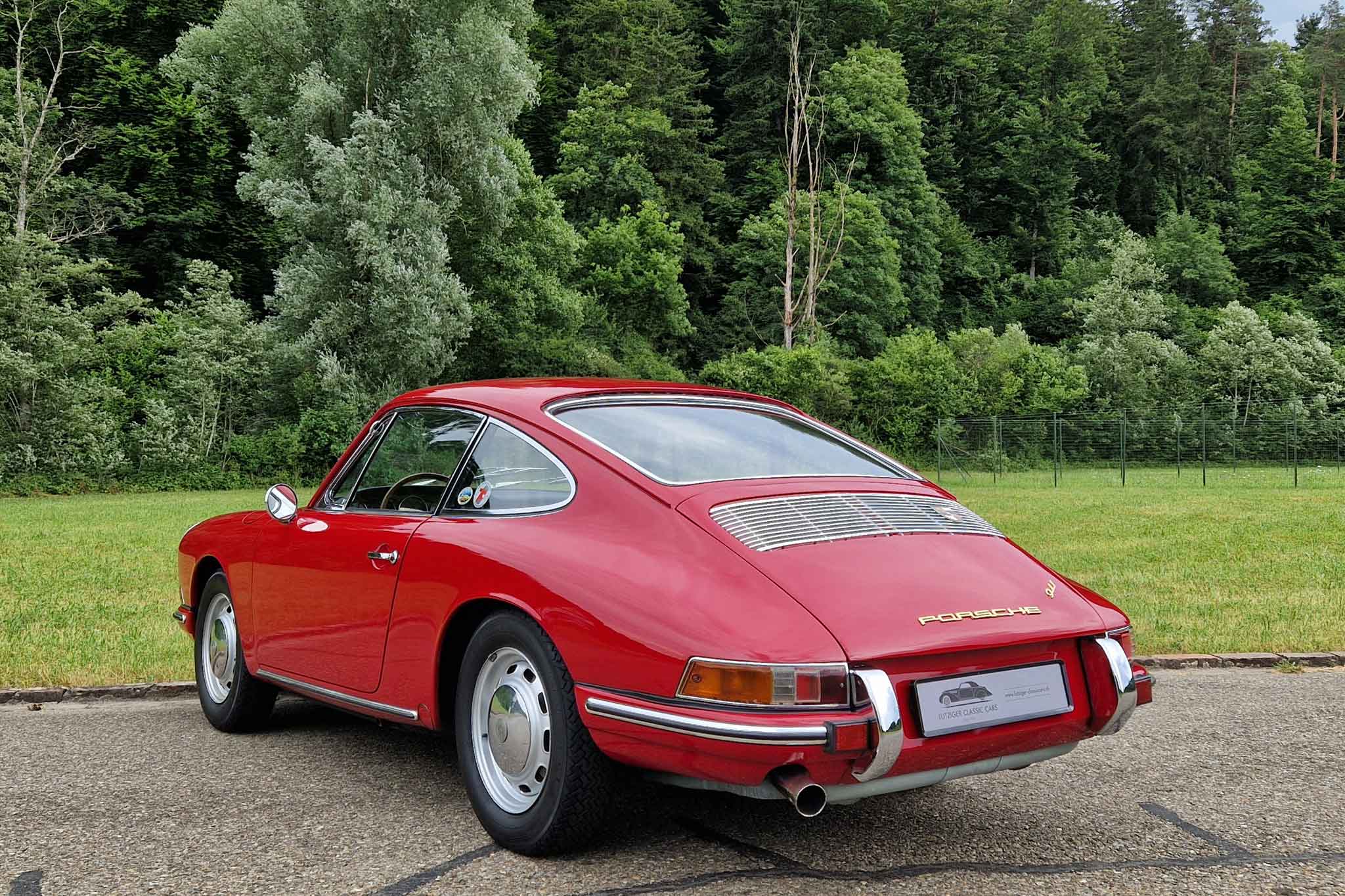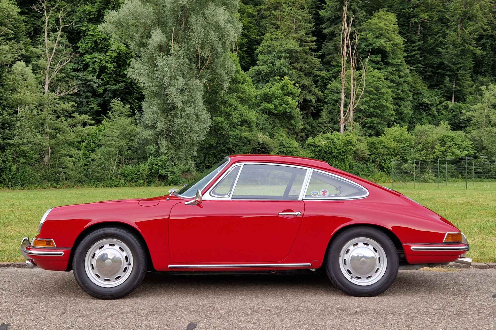 Das hier angebotene Porsche 911 Short Wheelbase Coupé wurde im April 1966 neu von Sonauto Paris, in der Farbe Polo-Rot und Kunstleder Schwarz, an einen Amerikaner mit Adresse in einem 5-Sterne-Hotel in Paris ausgeliefert. Laut dem Kardex-Auszug von Porsche blieb das Auto bis Januar 1967 in Europa und ging später wohl mit dem Erstbesitzer in die USA. In den Jahren 2012 – 2013 fand dieses 911 Coupé den Weg aus den USA zuerst nach Italien, wo es schliesslich von einem Schweizer Porsche-Sammler erworben und in die Schweiz importiert wurde.
