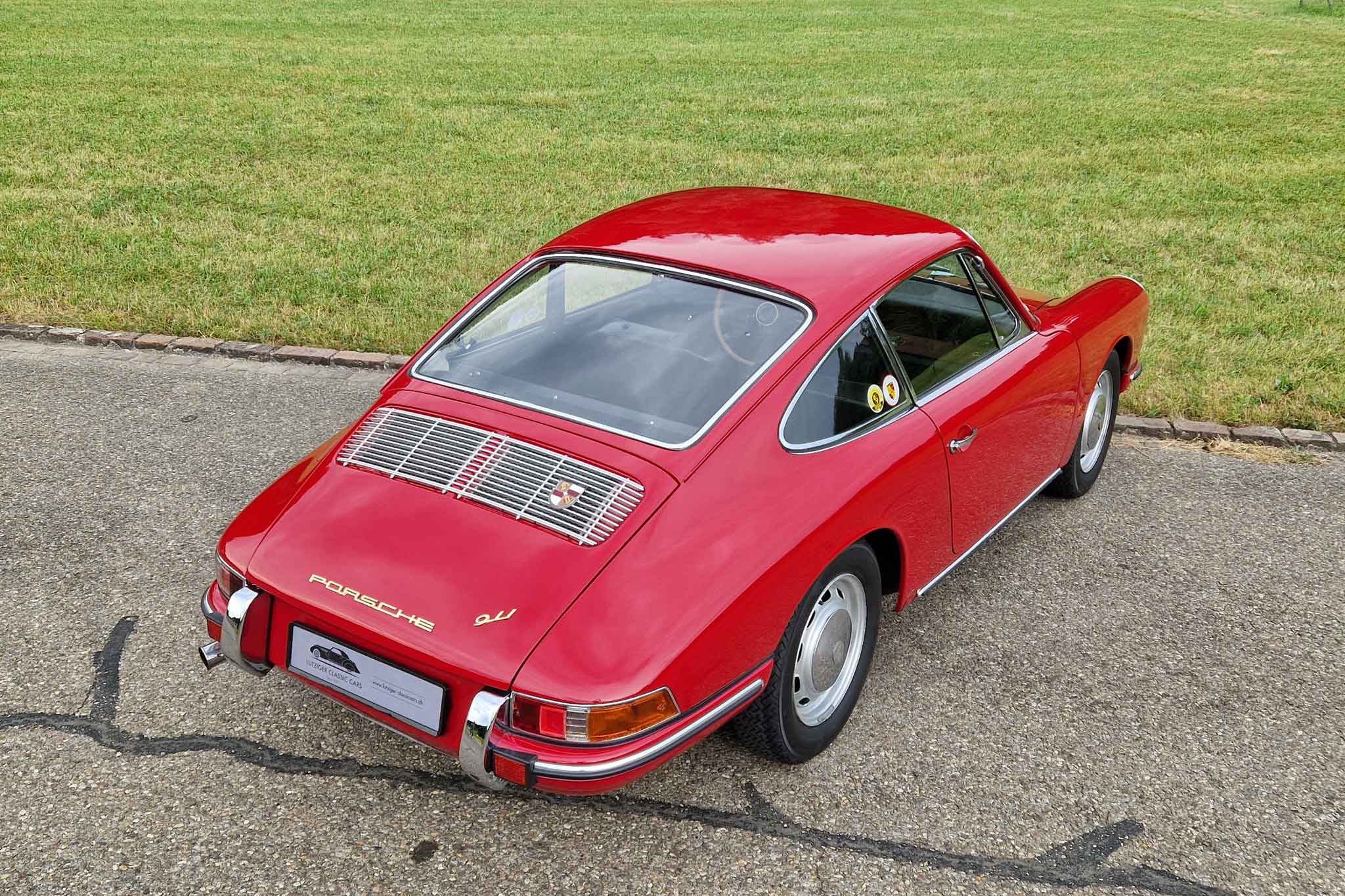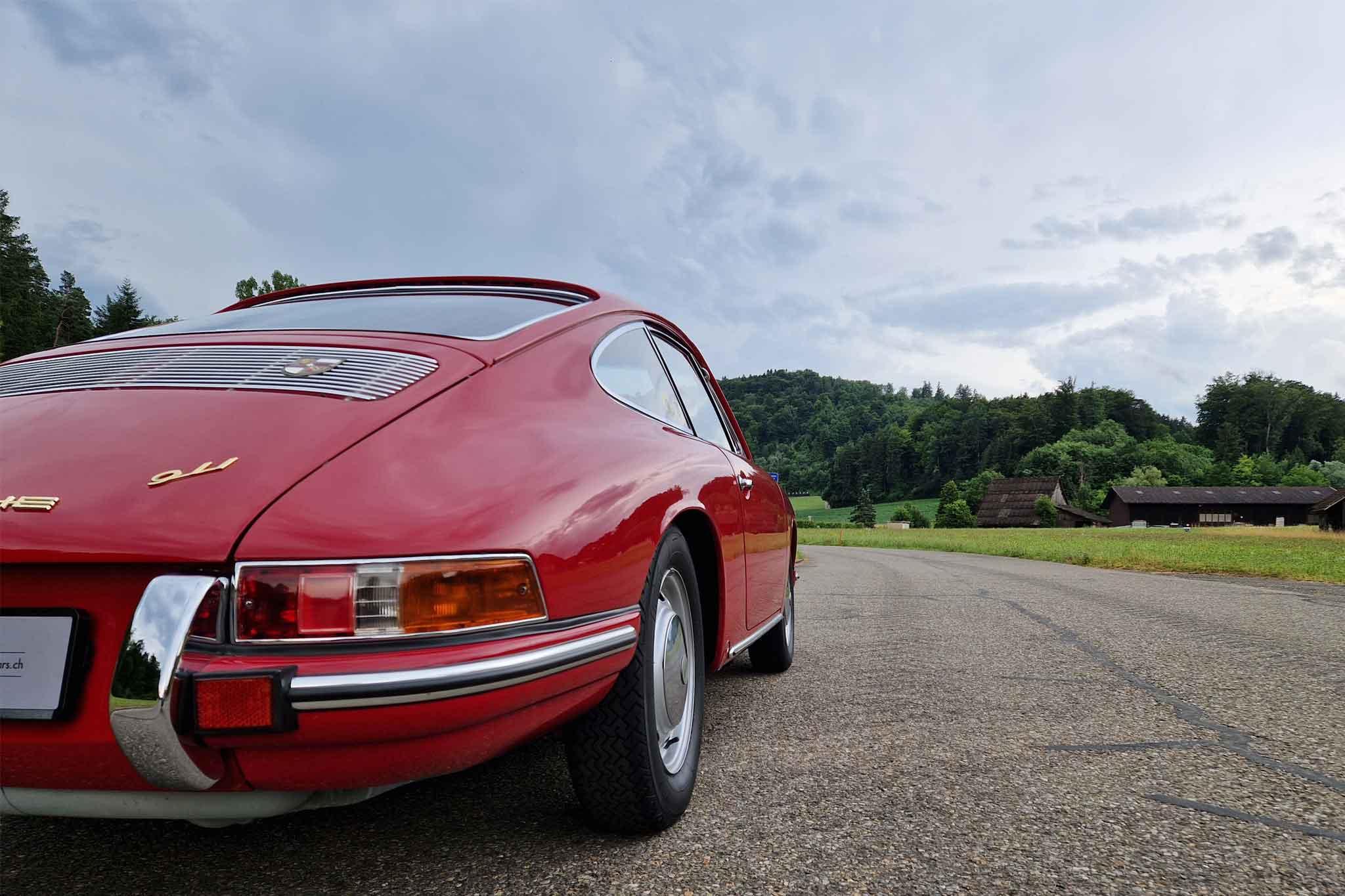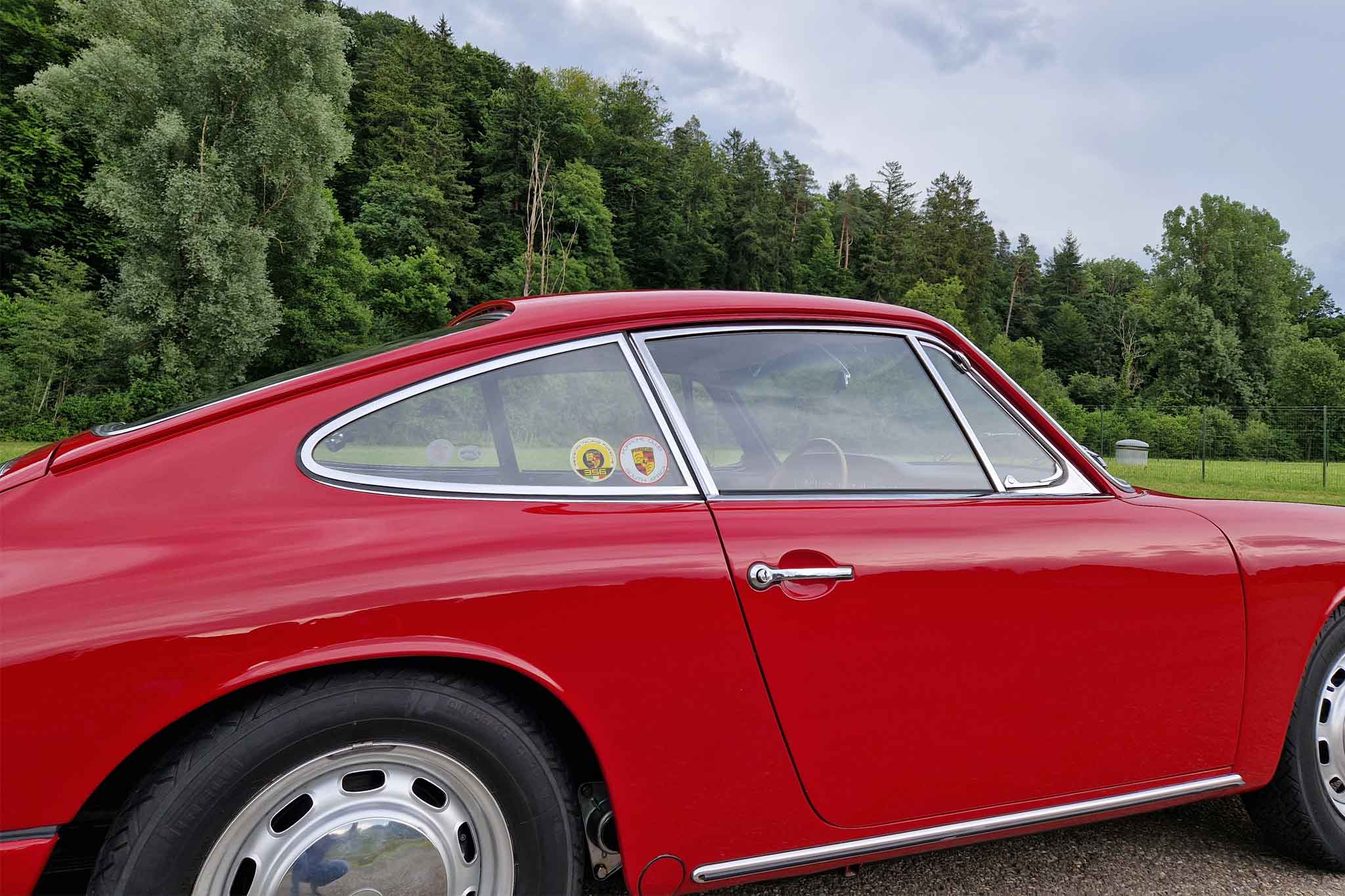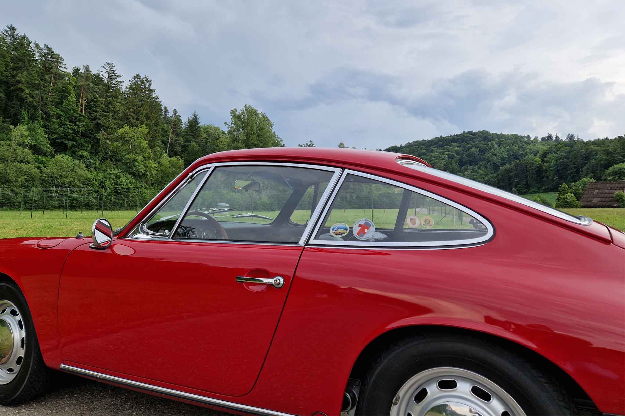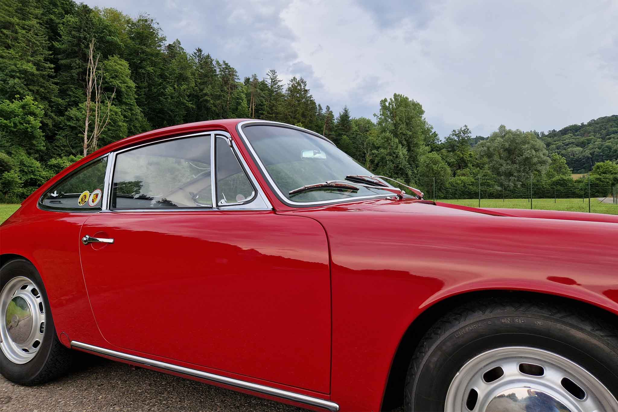 Das hier angebotene Porsche 911 Short Wheelbase Coupé wurde im April 1966 neu von Sonauto Paris, in der Farbe Polo-Rot und Kunstleder Schwarz, an einen Amerikaner mit Adresse in einem 5-Sterne-Hotel in Paris ausgeliefert. Laut dem Kardex-Auszug von Porsche blieb das Auto bis Januar 1967 in Europa und ging später wohl mit dem Erstbesitzer in die USA. In den Jahren 2012 – 2013 fand dieses 911 Coupé den Weg aus den USA zuerst nach Italien, wo es schliesslich von einem Schweizer Porsche-Sammler erworben und in die Schweiz importiert wurde.