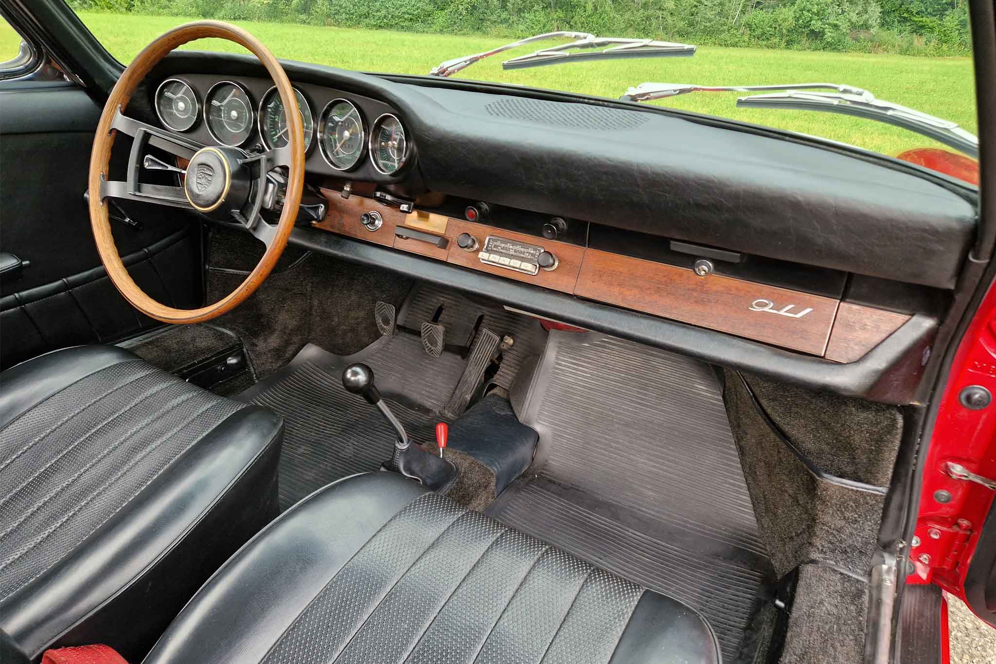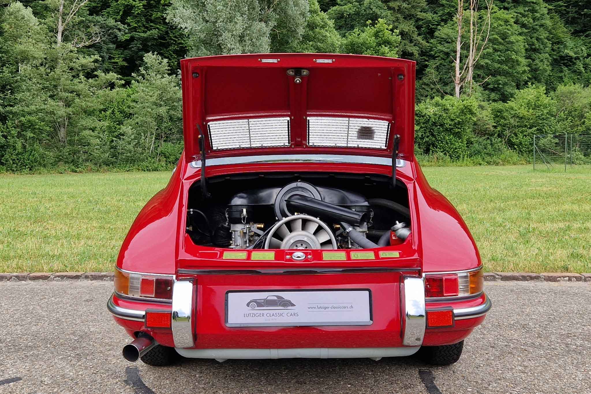 Jüngst wurde dieses Porsche 911 SWB-Coupé von bekanntem Tessiner Porsche-Spezialisten mechanisch auf Vordermann gebracht. Motor und Getriebe wurden aufgefrischt, nicht aufgemacht, da in sehr gutem Zustand. Die ganze Mechanik / Elektrik auf der Wagenunterseite, im Motorraum und Kofferraum wurden revidiert und das Armaturenbrett originalgetreu neu bezogen. Es ist matching numbers and color und befindet sich, frisch ab MFK-Veteran und neu bereift, in hervorragendem, top gepflegtem und sehr originalem Sammlerzustand. Der Kardex-Auszug von Porsche mit allen Facts der Erstauslieferung, US-Title und eine Expertise/Wertgutachten aus dem Jahre 2018, welche dem Auto einen Gesamtzustand 2 attestiert, sind vorhanden.