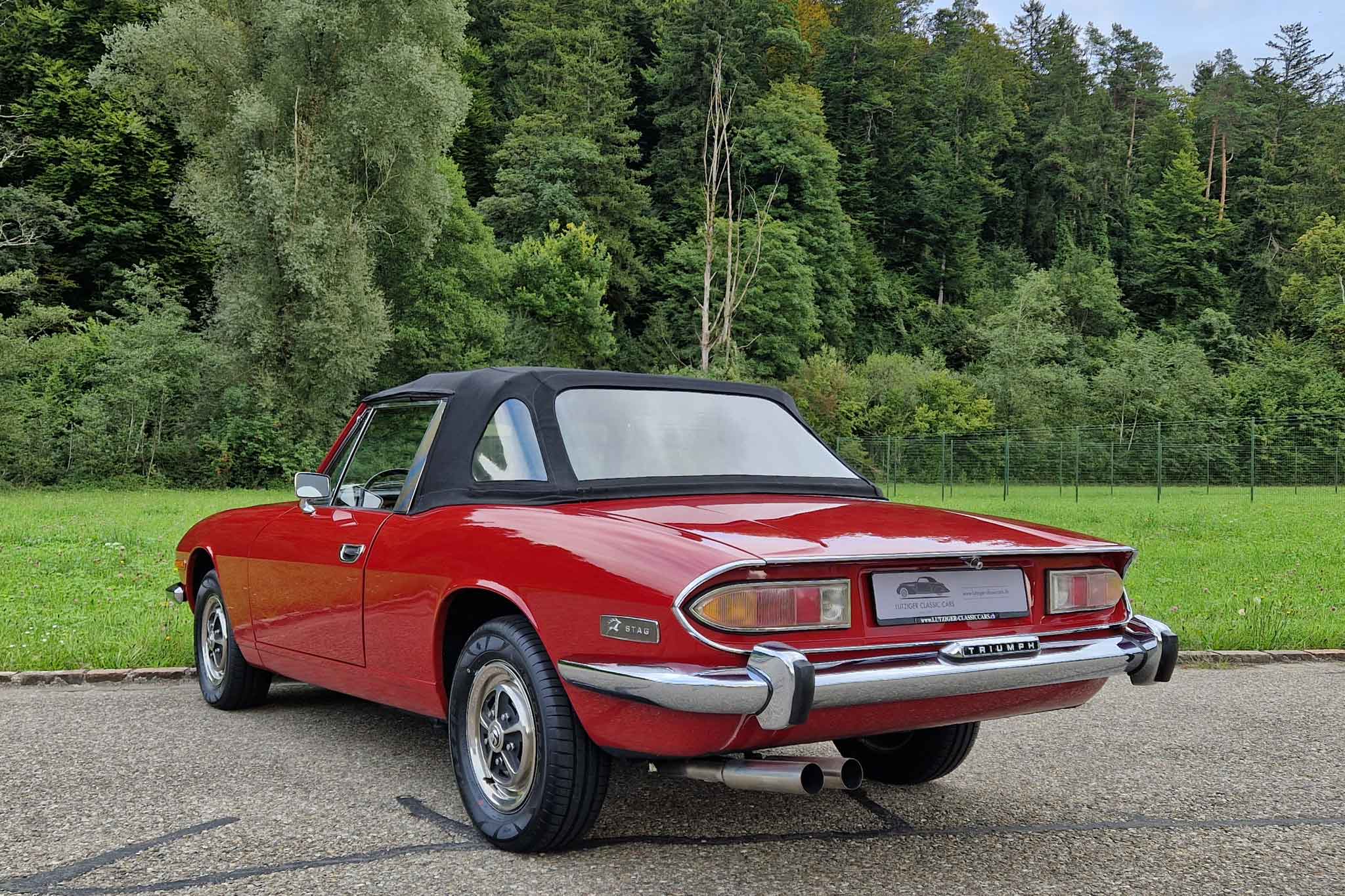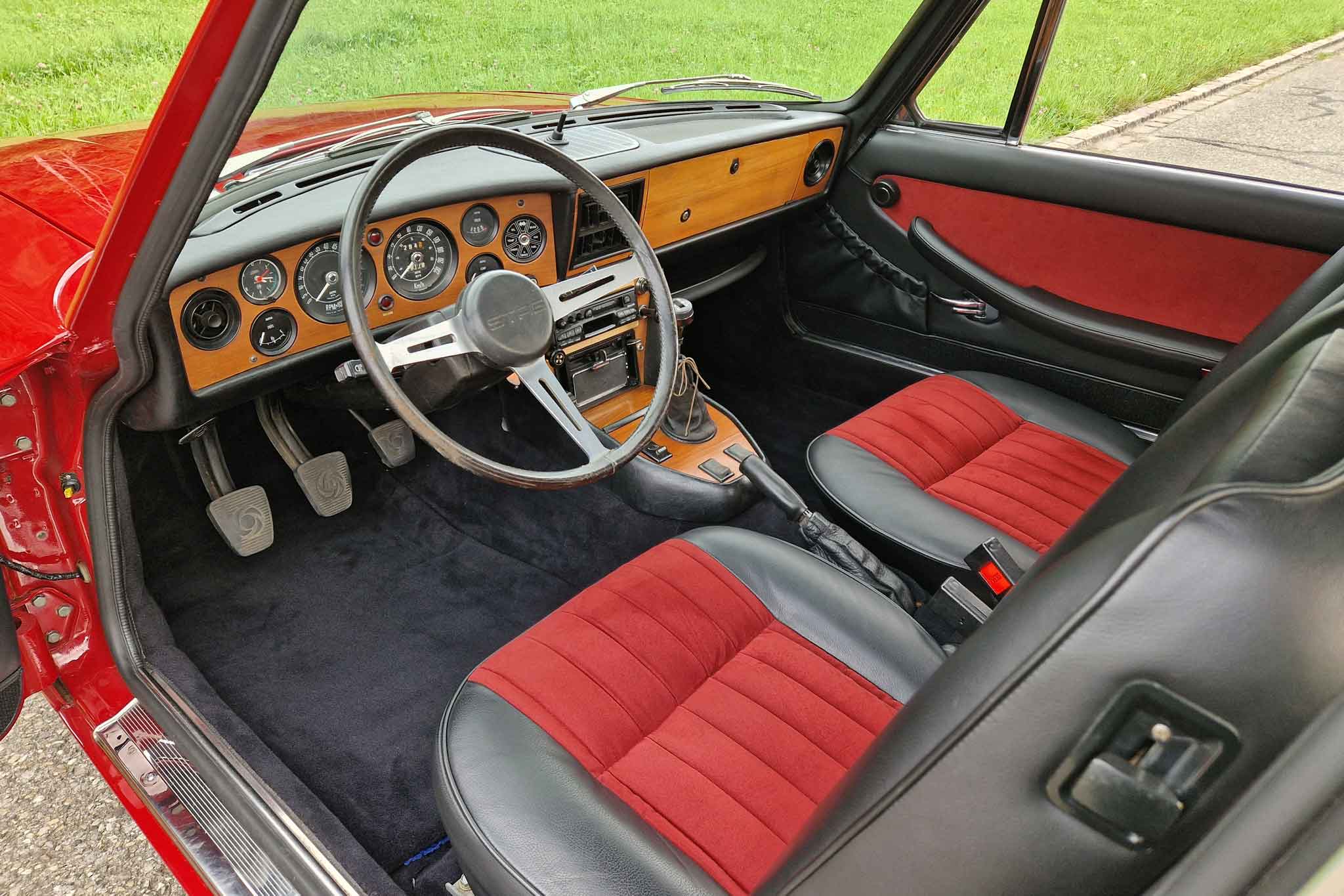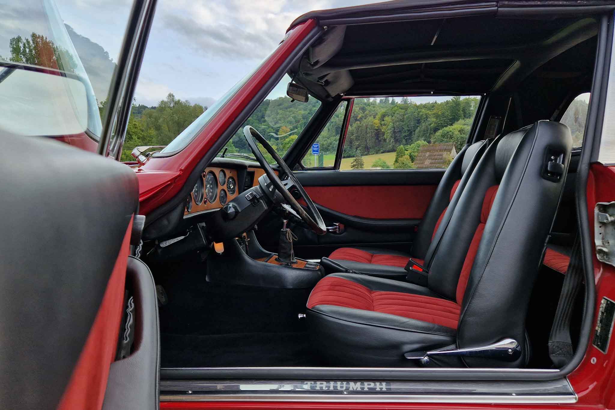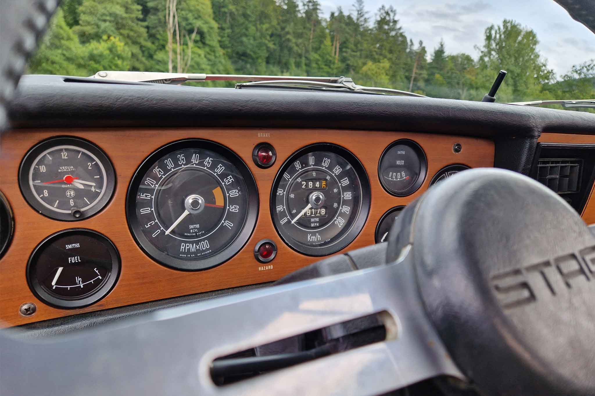 Der hier angebotene Triumph Stag wurde mit manuellem 4-Gang-Getriebe und dem optionalen Overdrive ausgeliefert und im August 1971 in der Schweiz das erste Mal zugelassen. Er war über 50 Jahre im zweiten und letzten Besitz und wurde dort über die Jahre Vollrestauriert. Das Auto befindet sich, neu bereift, in der Farbe Signal Red und Interieur Schwarz-Rot, in top gepflegtem Zustand. Über viele Belege und Rechnungen, zurück bis 1974, ist es sehr gut dokumentiert. Das originale Benutzerhandbuch mit Betriebsanleitungen, ein Teilekatalog und sogar originale Verkaufsprospekte sind vorhanden. Das ist die Gelegenheit, einen liebevoll restaurierten Stag zu einem schier unglaublichen Preis-Leistungs-Verhältnis zu erwerben.