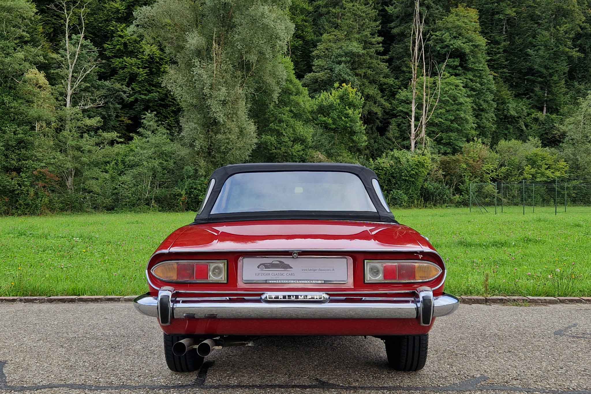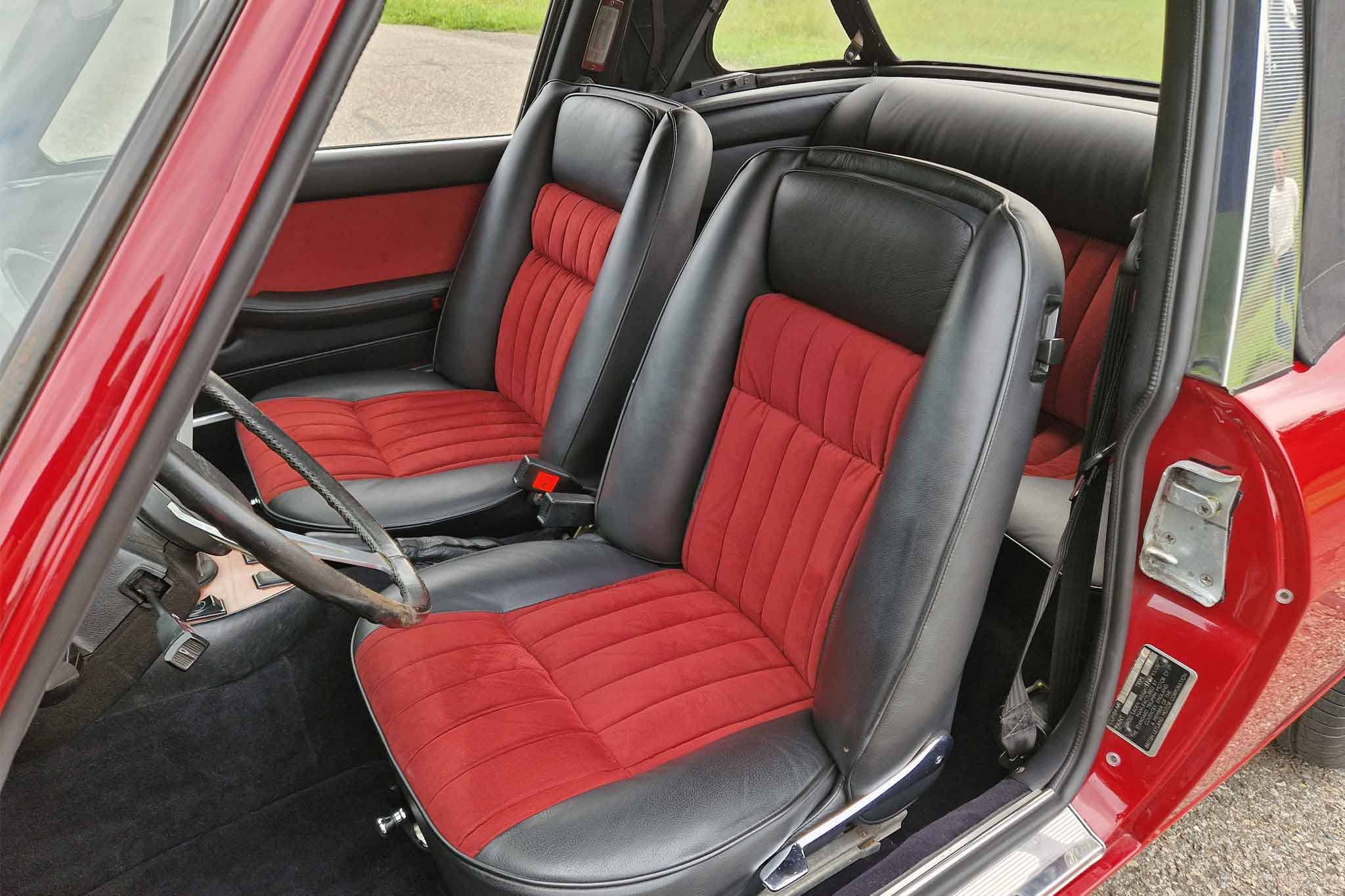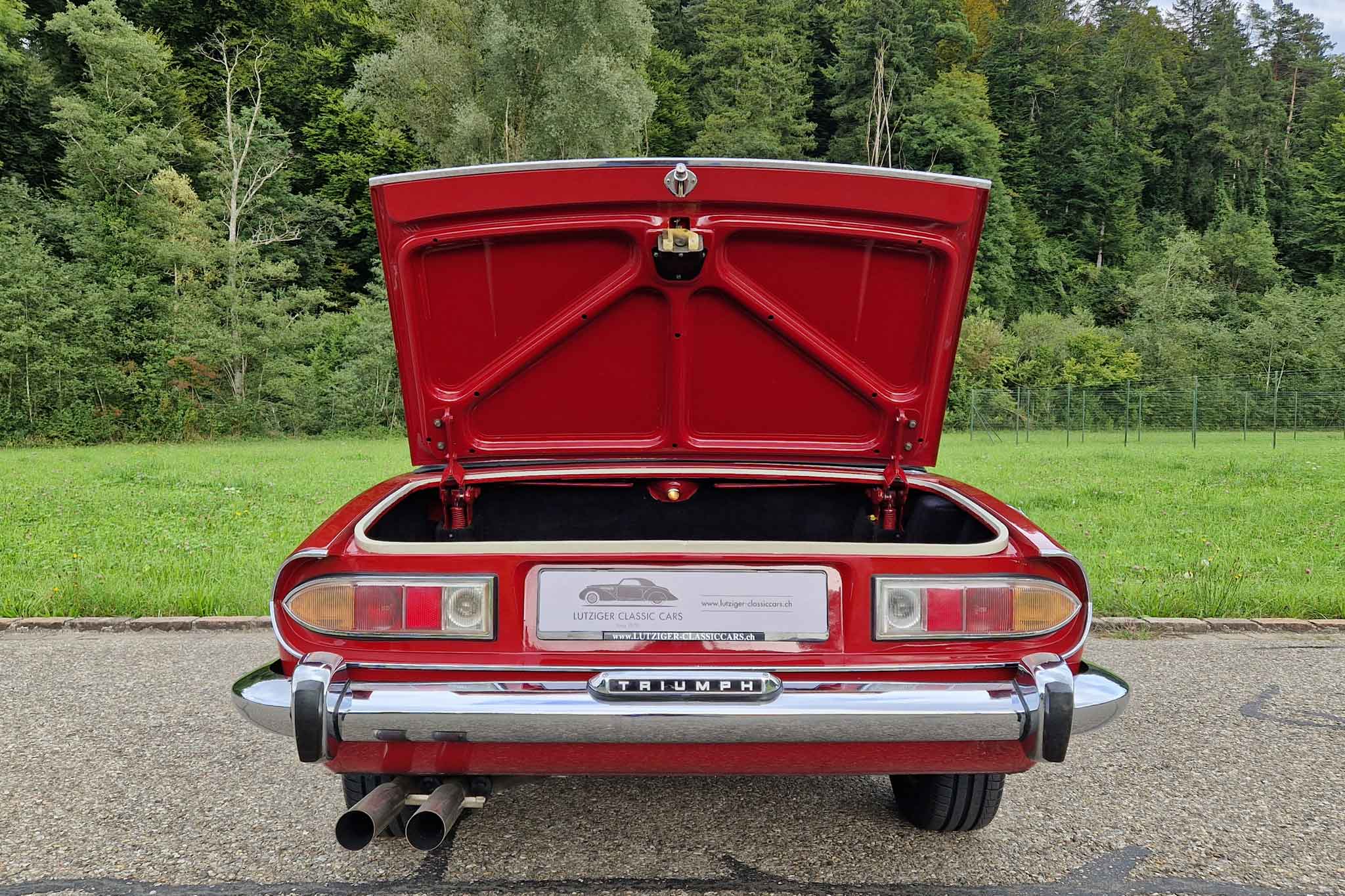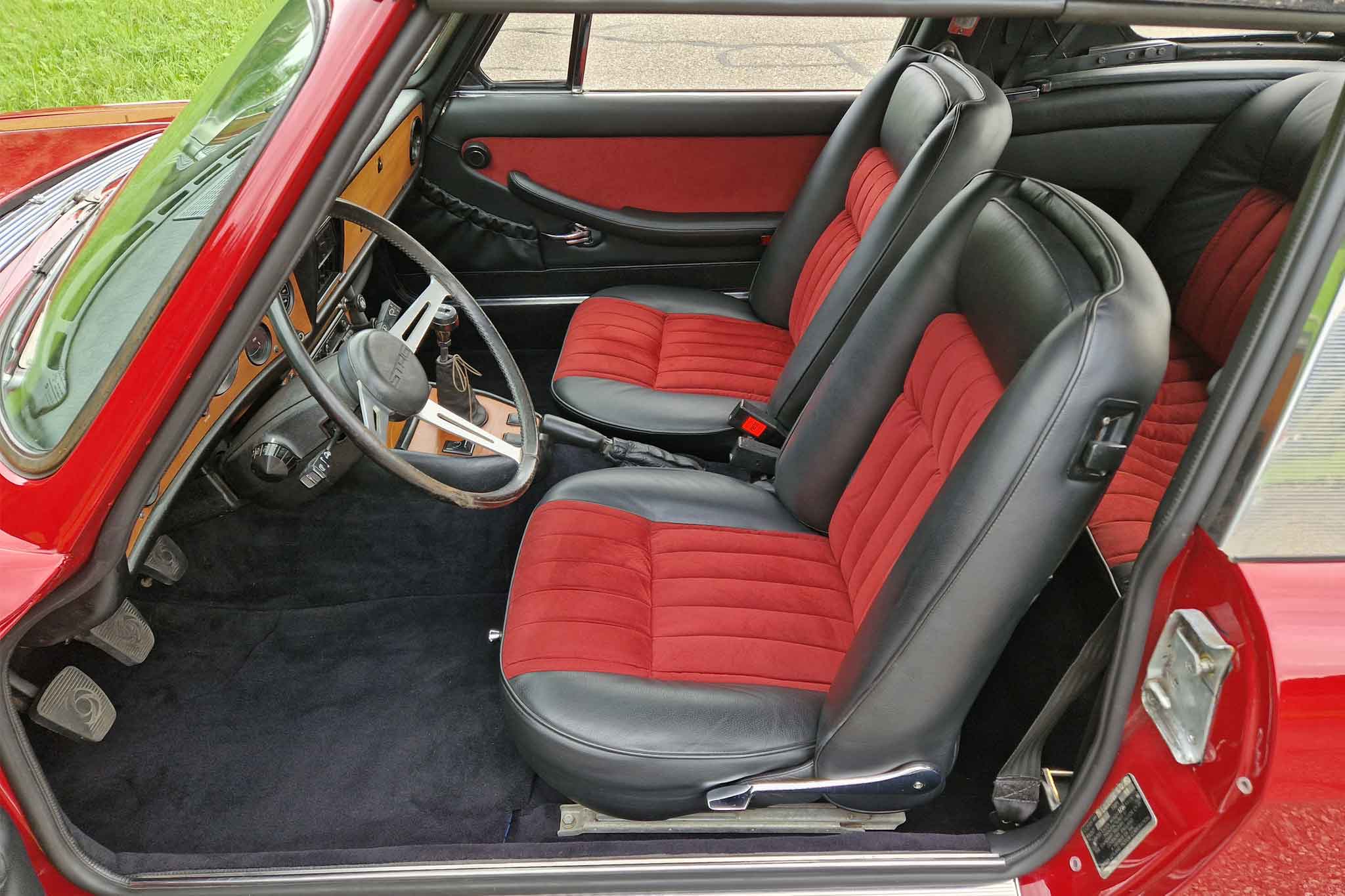 Der hier angebotene Triumph Stag wurde mit manuellem 4-Gang-Getriebe und dem optionalen Overdrive ausgeliefert und im August 1971 in der Schweiz das erste Mal zugelassen. Er war über 50 Jahre im zweiten und letzten Besitz und wurde dort über die Jahre Vollrestauriert. Das Auto befindet sich, neu bereift, in der Farbe Signal Red und Interieur Schwarz-Rot, in top gepflegtem Zustand. Über viele Belege und Rechnungen, zurück bis 1974, ist es sehr gut dokumentiert. Das originale Benutzerhandbuch mit Betriebsanleitungen, ein Teilekatalog und sogar originale Verkaufsprospekte sind vorhanden. Das ist die Gelegenheit, einen liebevoll restaurierten Stag zu einem schier unglaublichen Preis-Leistungs-Verhältnis zu erwerben.